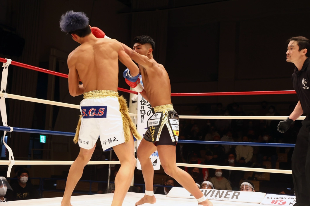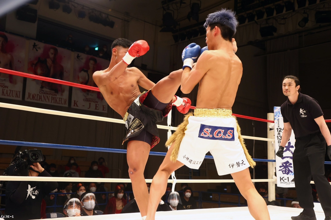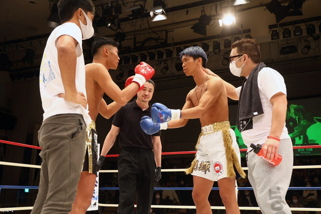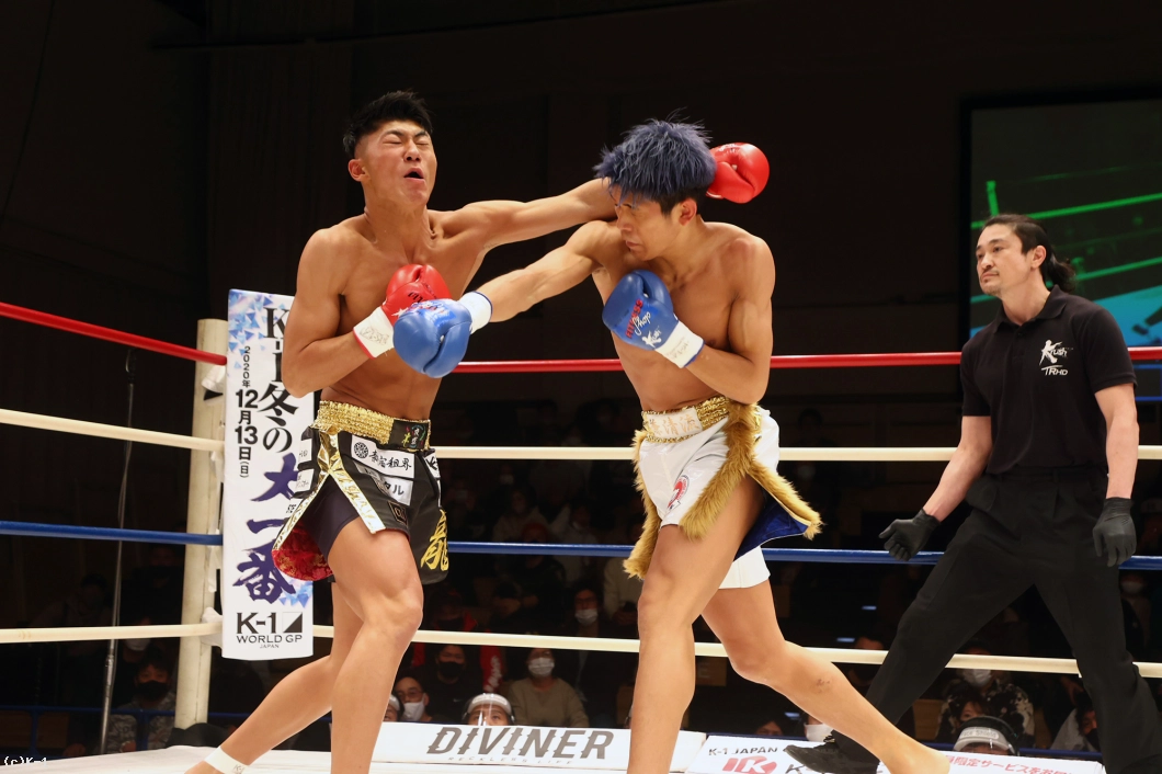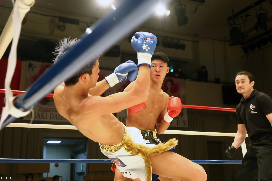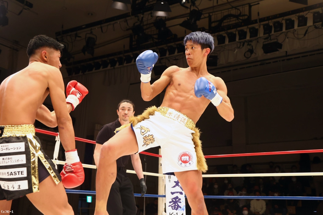 「昨日の計量を再計量でクリアして、対戦相手の志村選手とジムの代表・大沢選手、すみませんでした。久々のKOで勝ててホッとしています。自分これで6連勝、K-1甲子園も連覇したので、来年1月のK'FESTA、ぜひ声お待ちしてます」