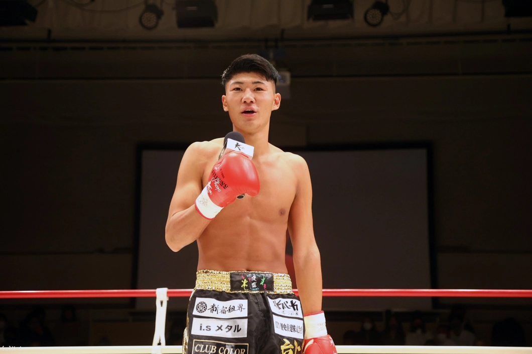「今回の試合は久々のKO勝ちができて嬉しかったです。(相手の志村は)戦う前は結構ガツガツ来るのかなと思っていたんですけど、戦ってみたら意外と自分の距離で戦ってくれたので、やりやすかったと思います。いま連勝中なので、今後もっともっと勝ち続けて、そのままベルトを獲れるように頑張っていきます。応援よろしくお願いします」