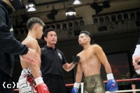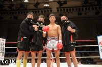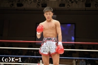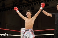 「勝てたんでよかったんですけど、練習した動きが出せなかったんで、まだまだ頑張っていきます。(相手の印象は?)映像よりパンチが重くて、そこで力んじゃいました。でも途中でヒザ蹴りを合わせられると思って、ヒザで倒せてよかったです。(今後の目標は?)チャンピオンの新美貴士選手とやりたいと思っているので、次はタイトルマッチがいいです」