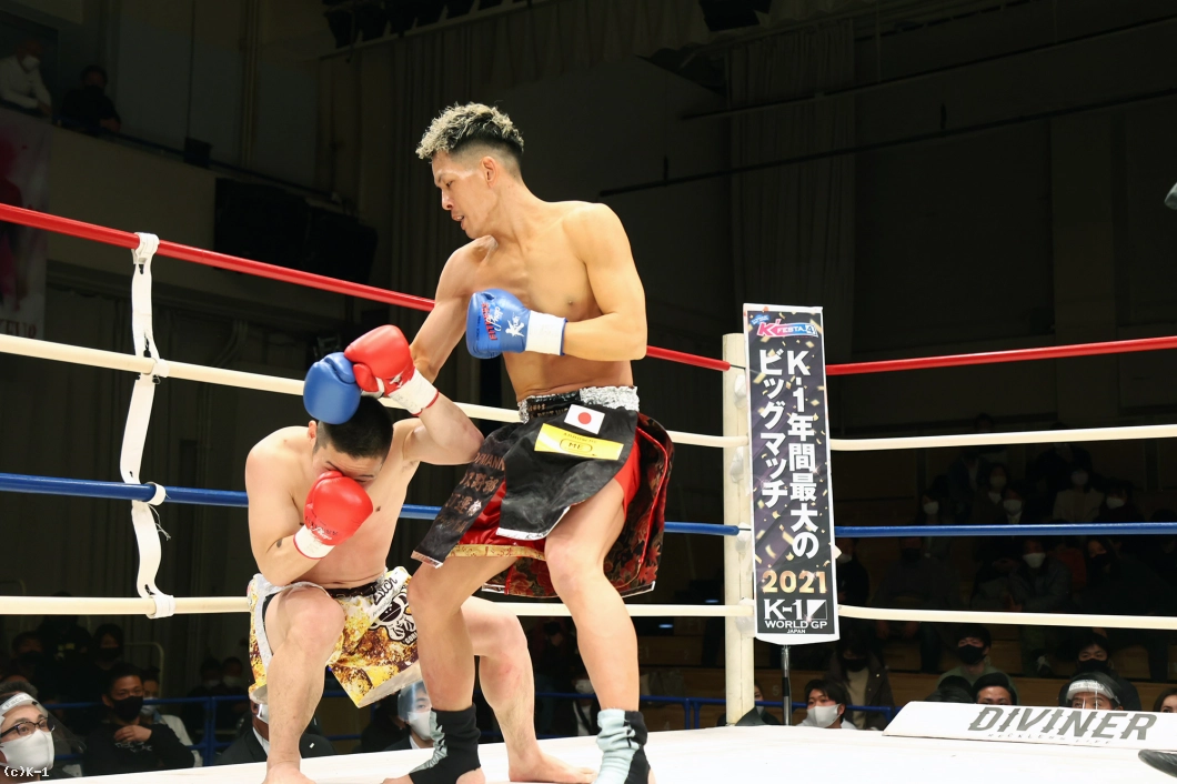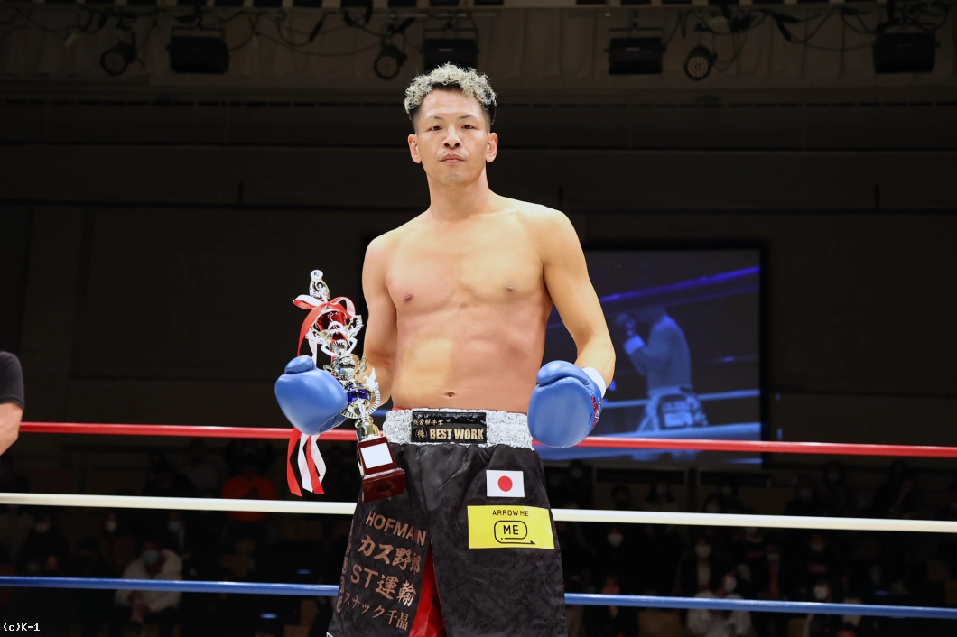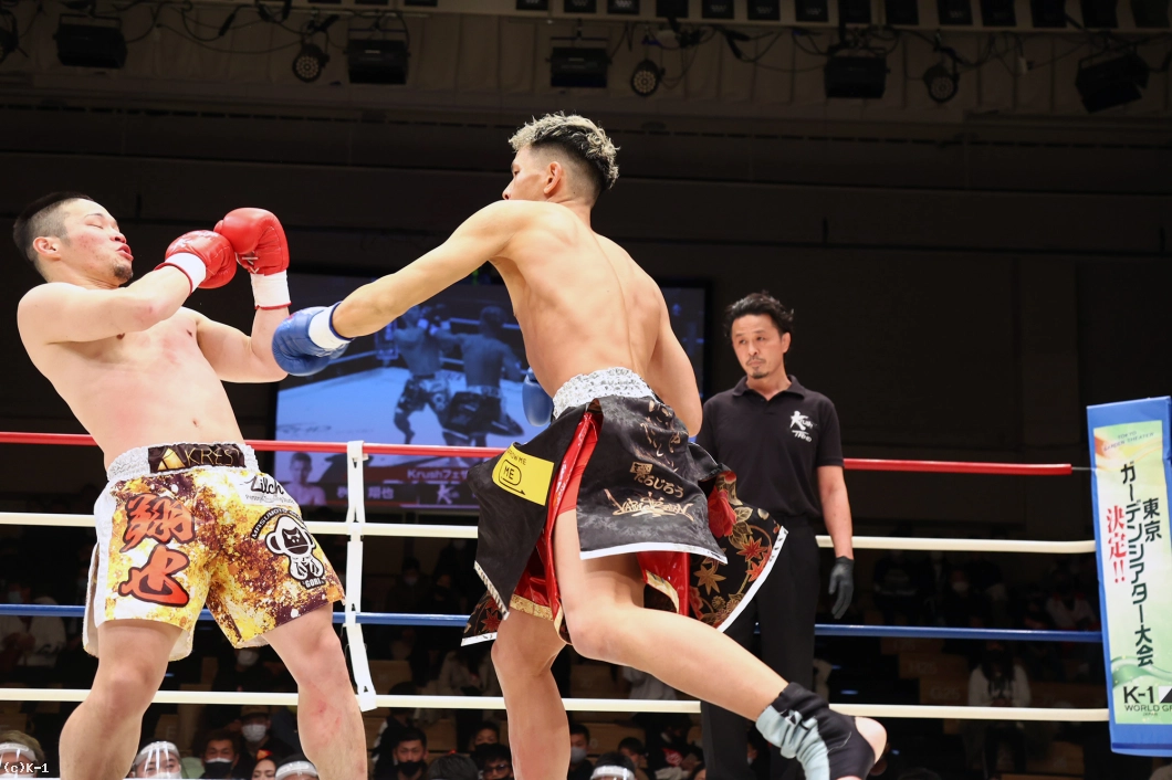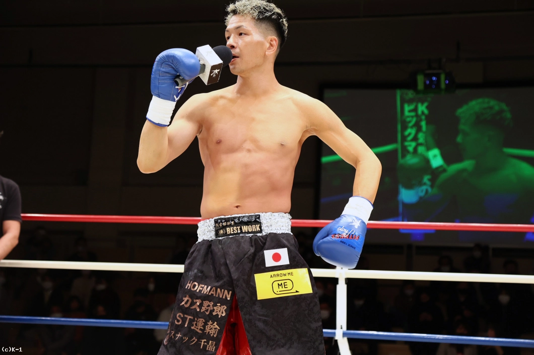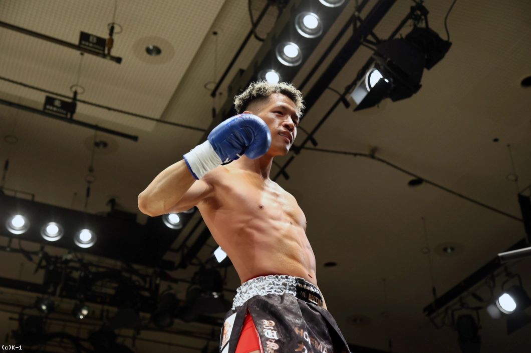「僕はずっとK-1に出たいと思ってやってきとって、桝本もずっとKrushで活躍している強い選手って知っとったんで、油断せずに集中してやった結果、勝てたと思います。(対戦相手の印象は?)思っていたよりもプレッシャーは感じなかったんですけど、作戦とは違うことをしてきたんで焦りました。良い感じに左が入って勝ててよかったです。(今後の目標は?)一番近い目標はK-1大阪大会に出て、応援してくれる人たちに試合を見てもらうことです」