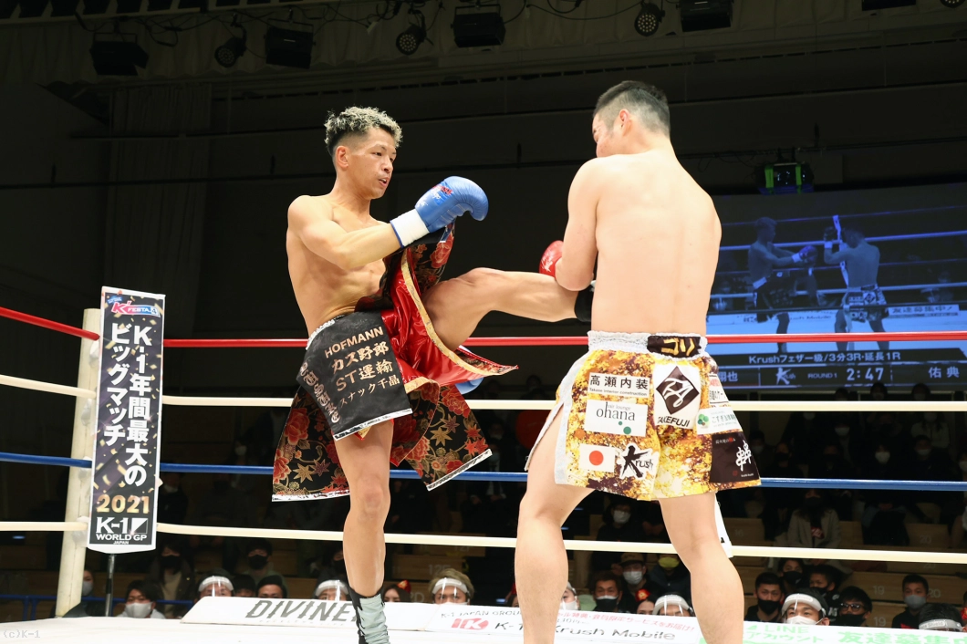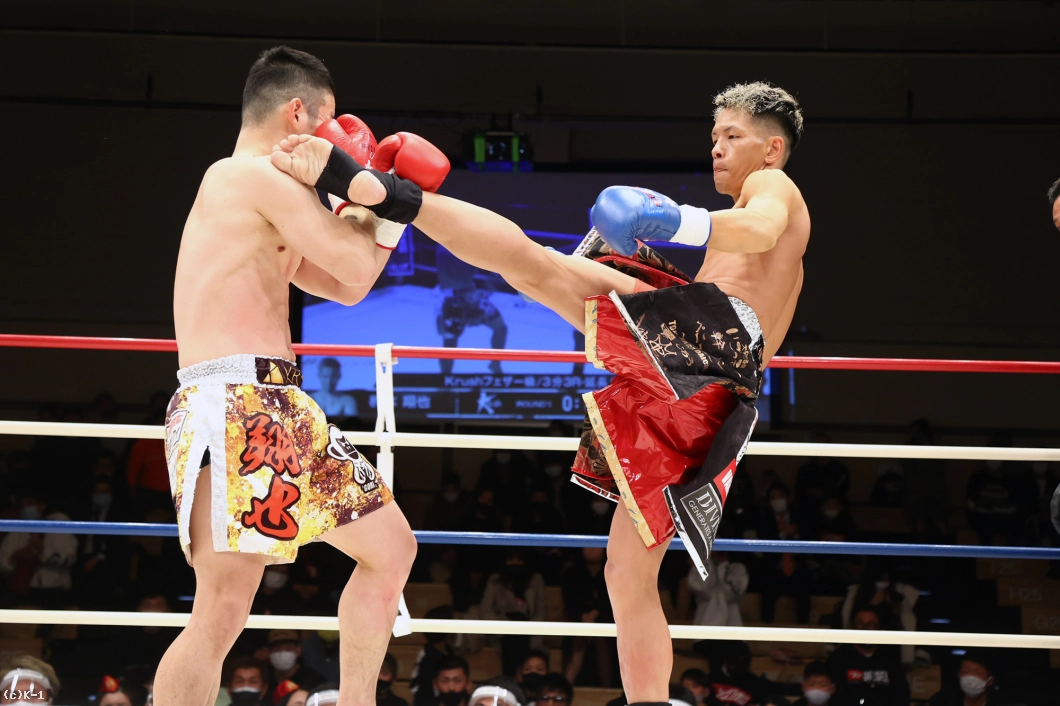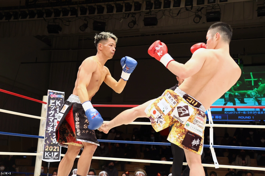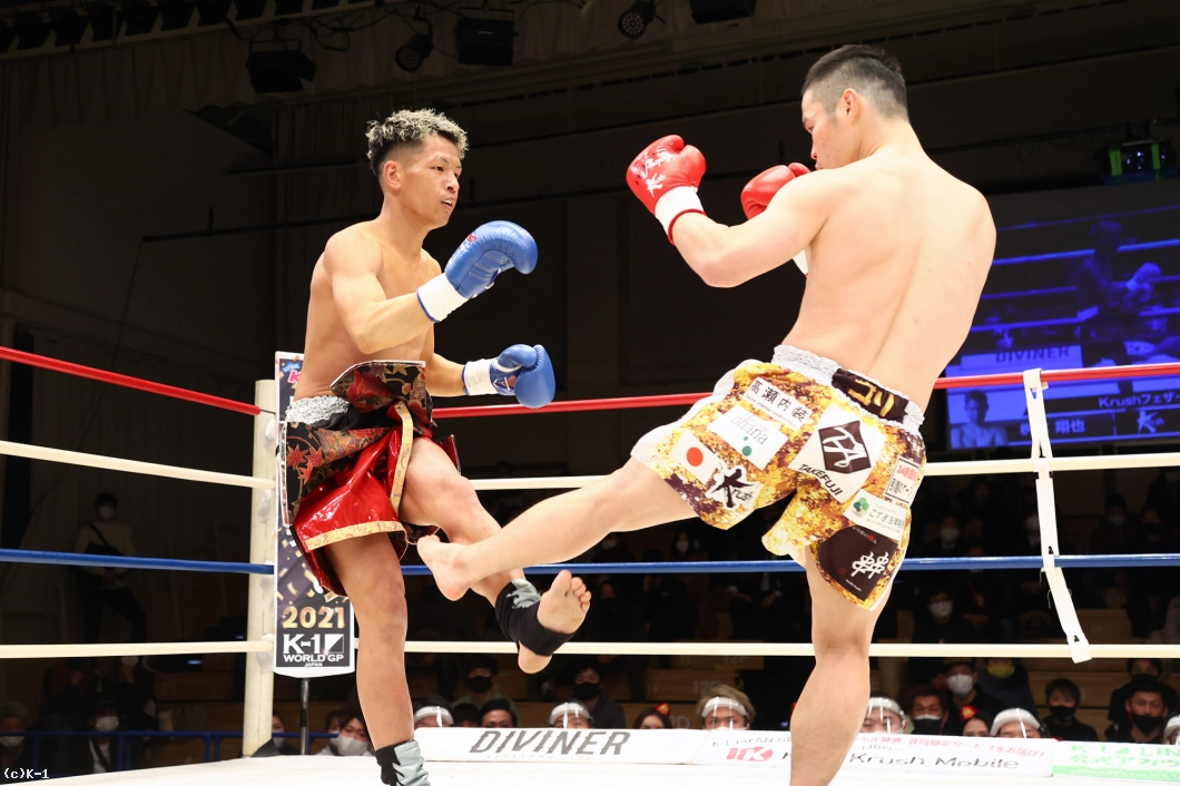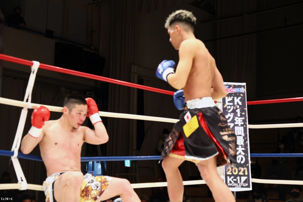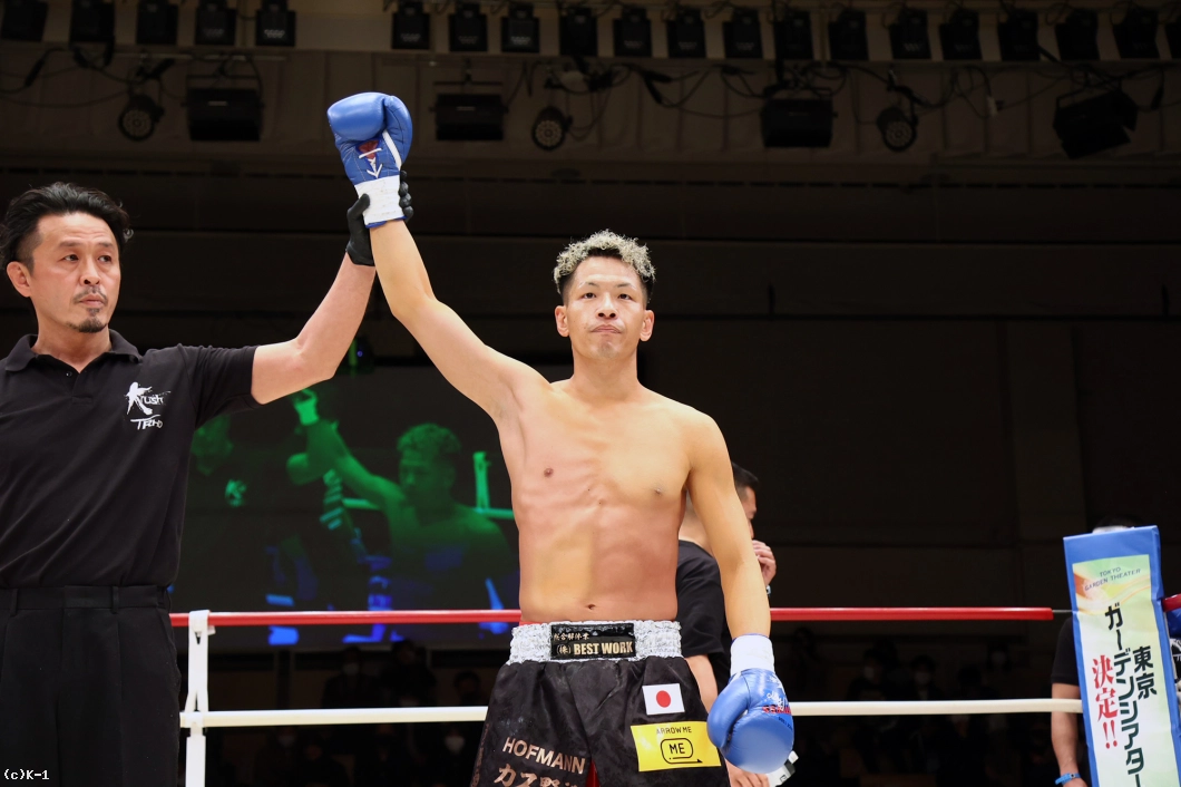 「僕はずっとK-1に出たいと思ってやってきとって、桝本もずっとKrushで活躍している強い選手って知っとったんで、油断せずに集中してやった結果、勝てたと思います。(対戦相手の印象は?)思っていたよりもプレッシャーは感じなかったんですけど、作戦とは違うことをしてきたんで焦りました。良い感じに左が入って勝ててよかったです。(今後の目標は?)一番近い目標はK-1大阪大会に出て、応援してくれる人たちに試合を見てもらうことです」