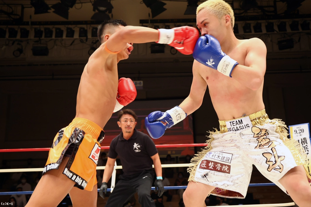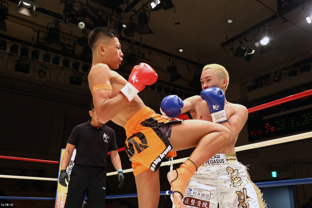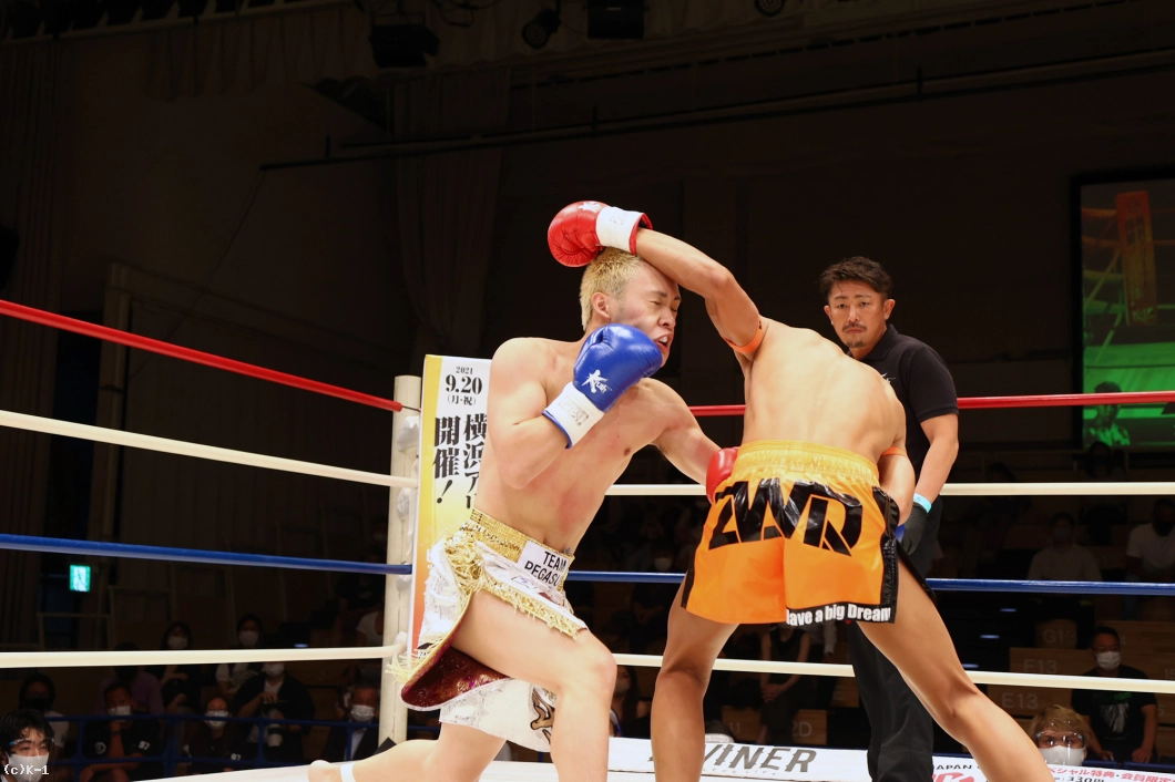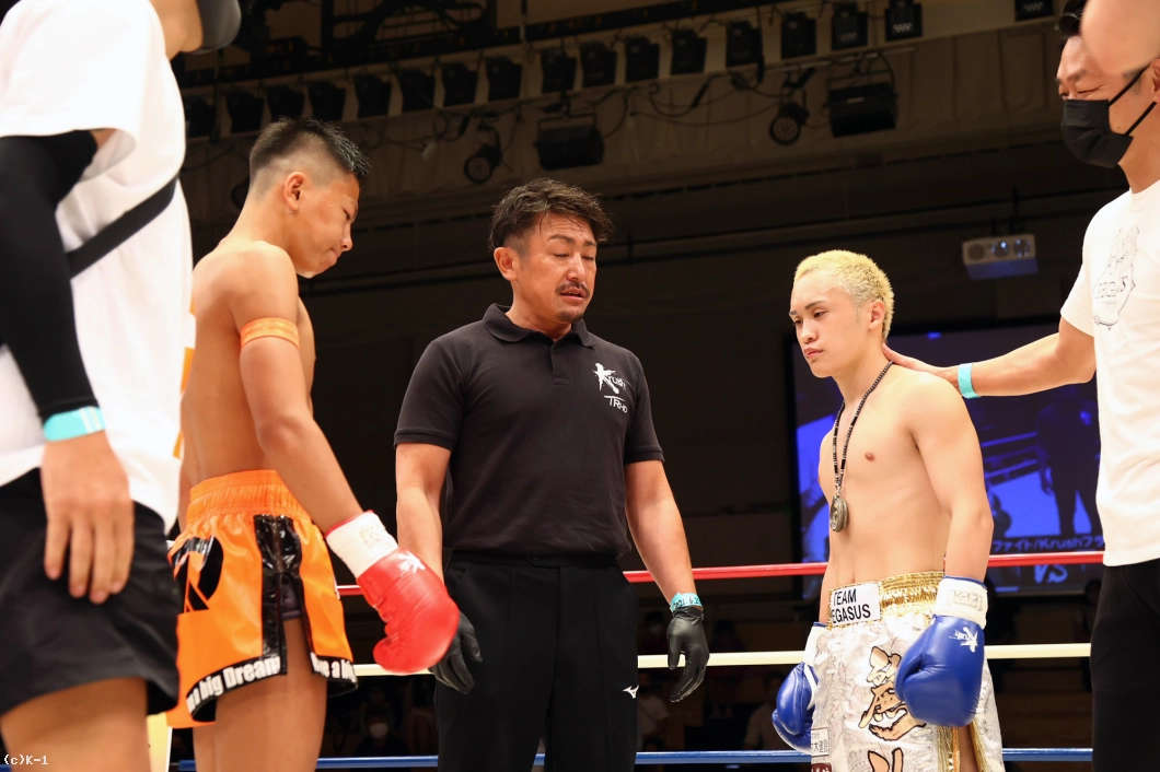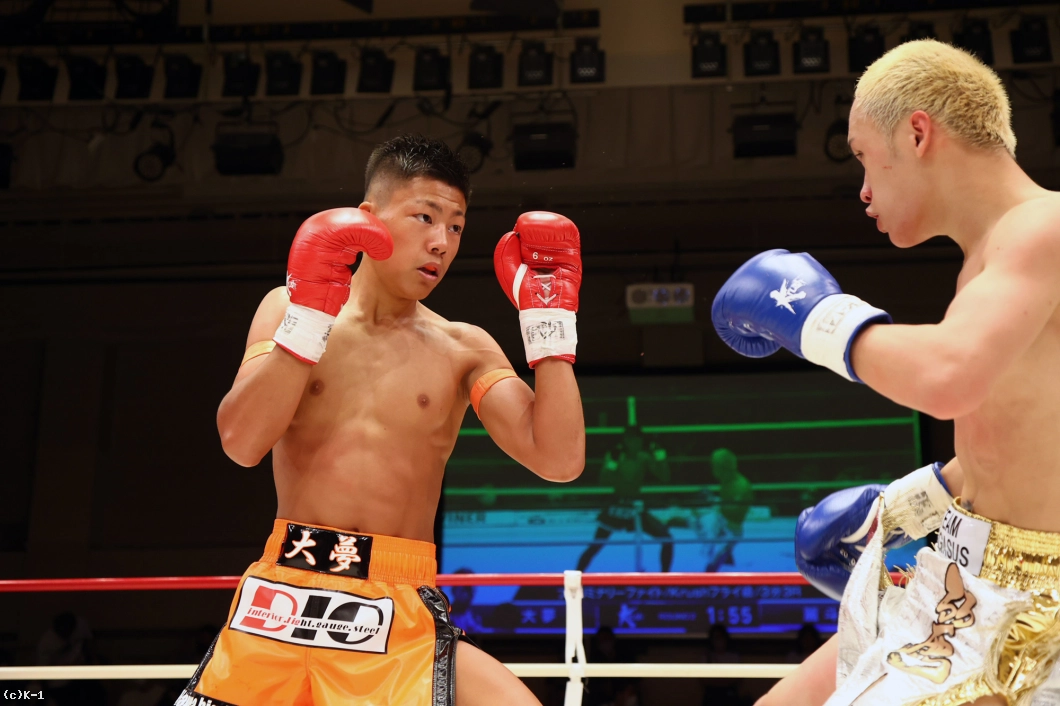 続いて大夢は右ストレートでダウンを追加。しかし立ち上がった麗斗は左ストレートと右フックで反撃し初回を乗り切る。
