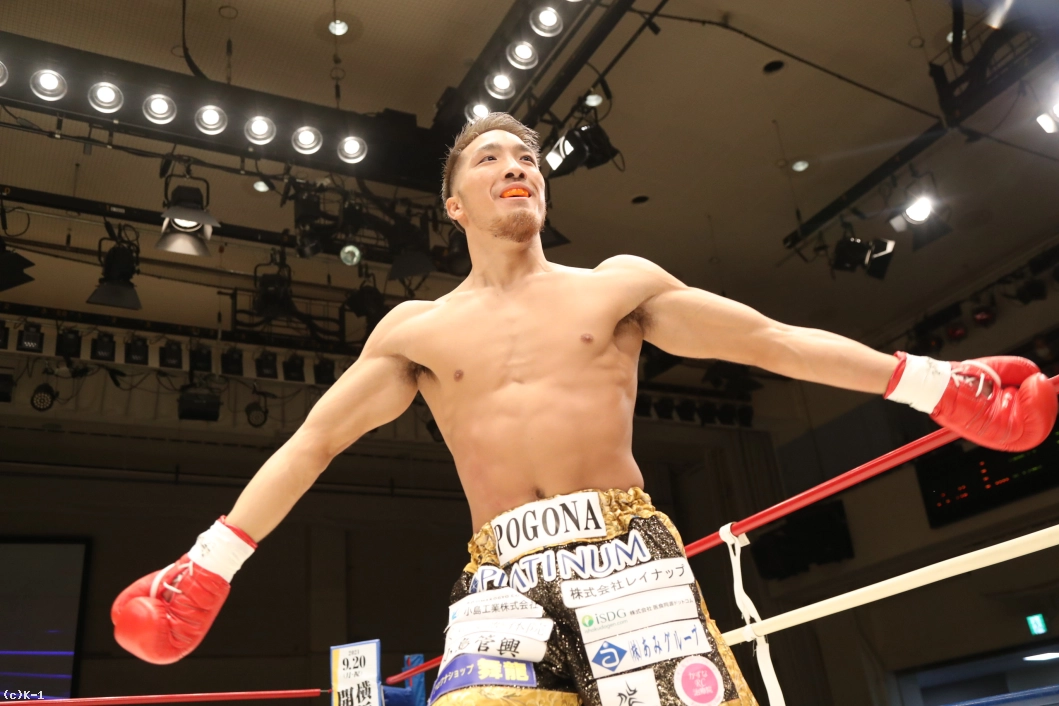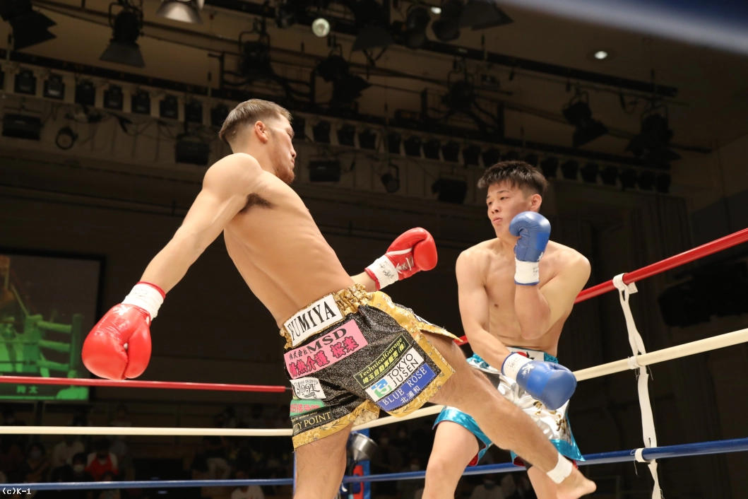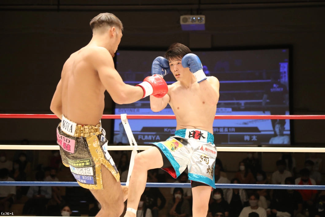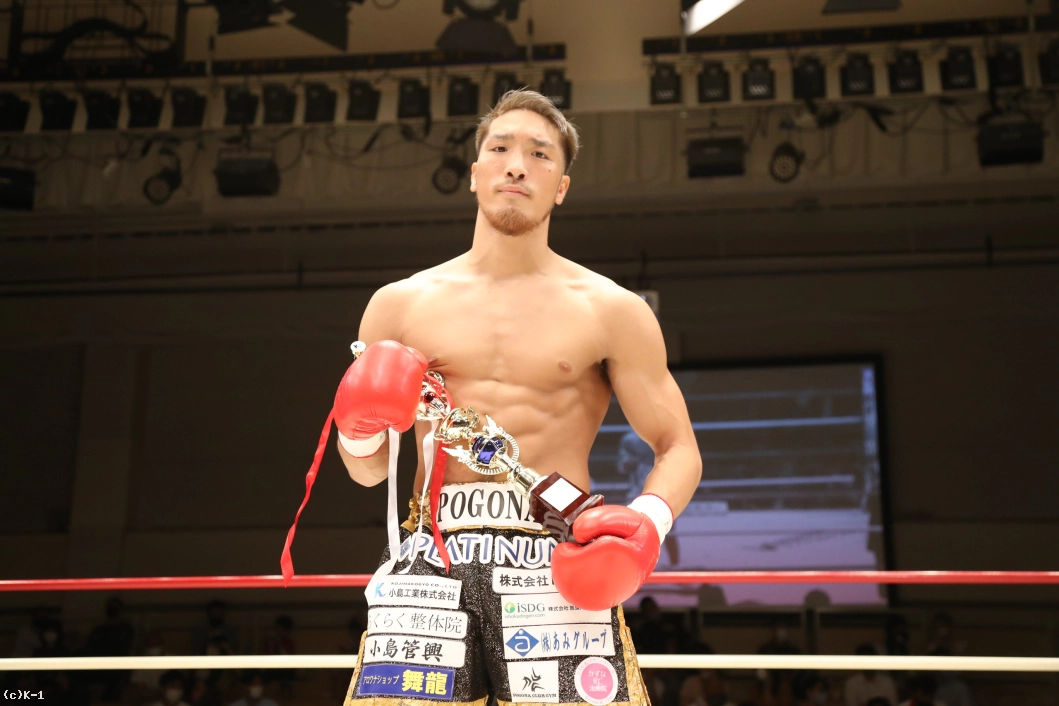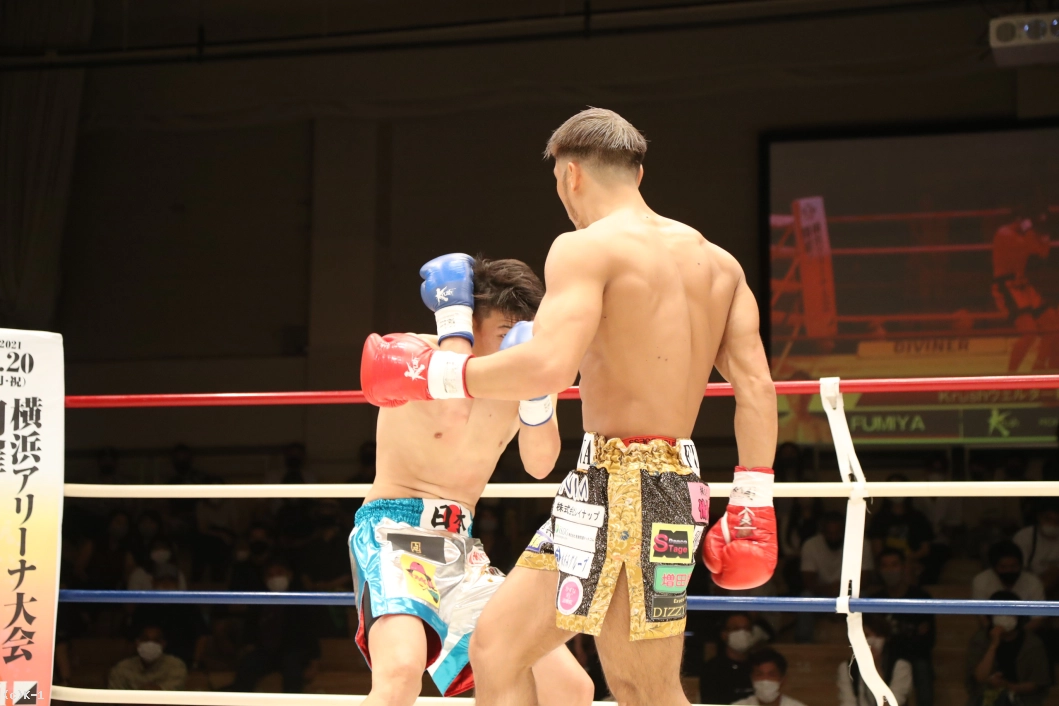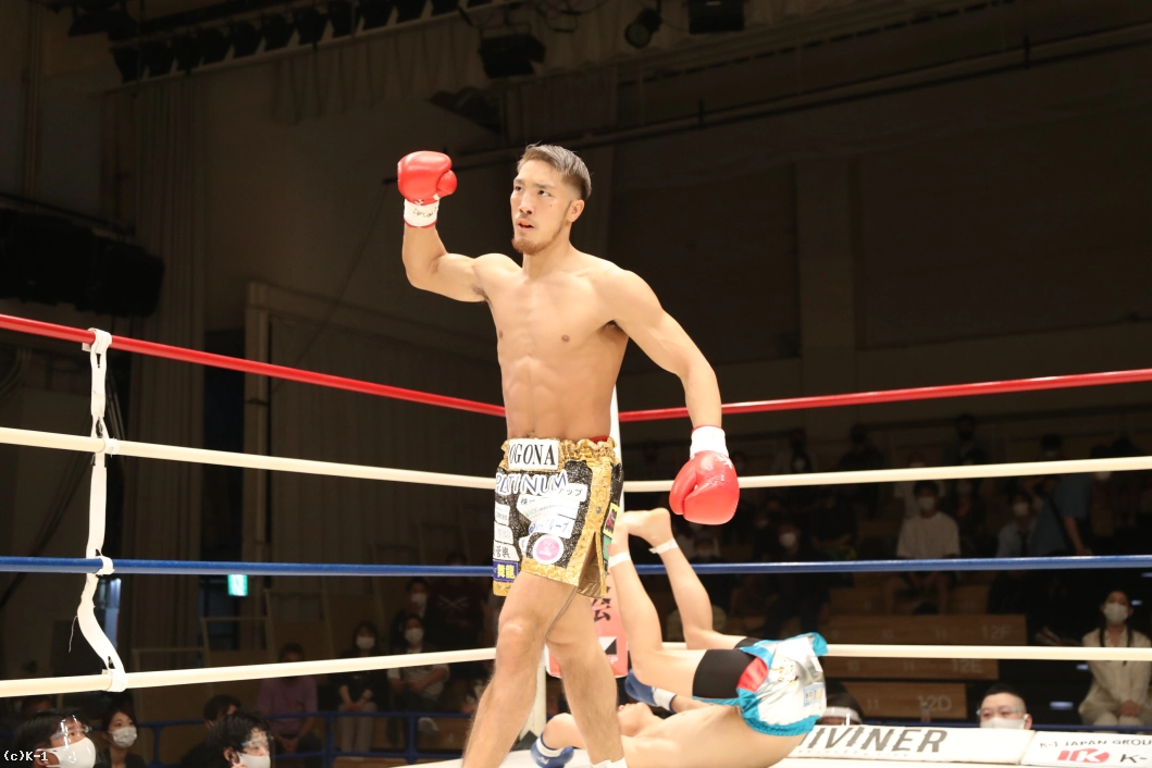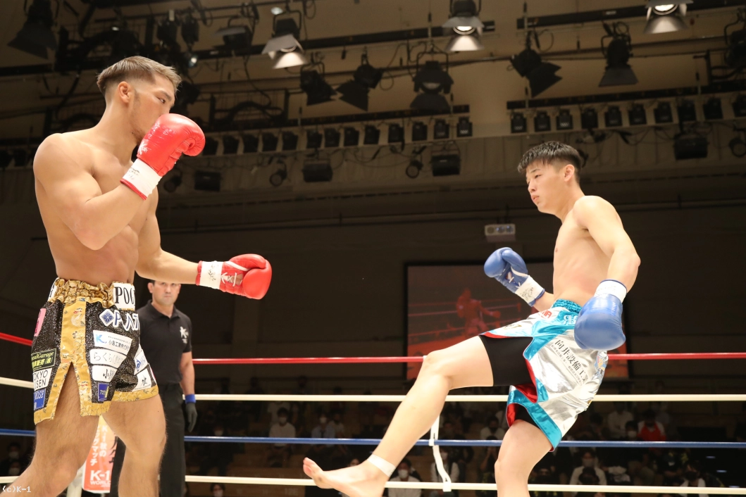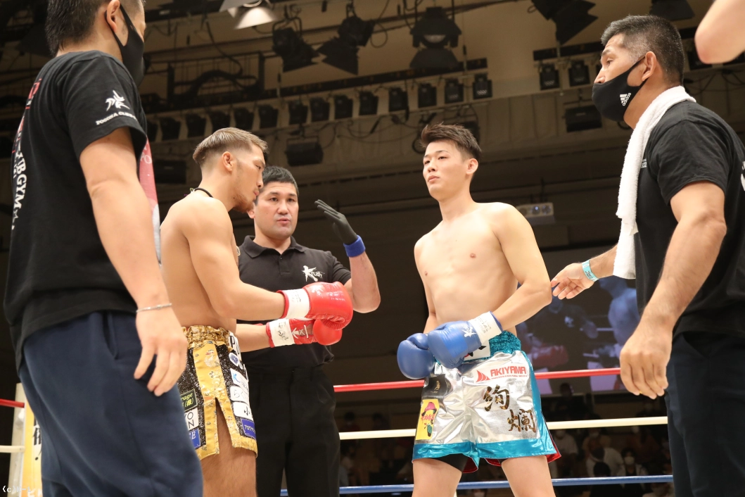 「練習していたバックハンド(ブロー)が当たって勝ててホッとしています。(対戦相手の印象は?)僕はウェルター級では背が小さい方なんですけど、絢太選手は僕より5㎝以上身長が高いんでやりづらいかなと思っていました。でもうちのポゴナクラブには背が高い海斗がいて、彼と一緒に対策していました。(今後の目標は?)チャンピオンになるためには加藤虎於奈を倒さないといけないので、虎於奈を倒す練習、バックハンドを練習しようと思います」