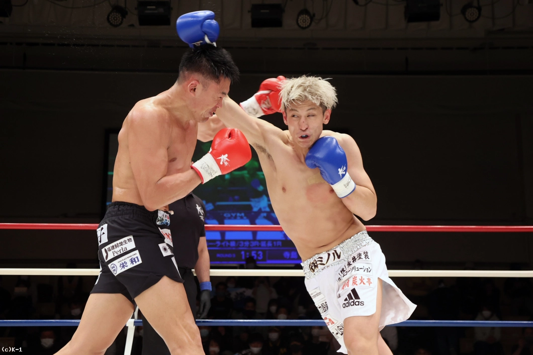 3R、細かいフットワークから右ミドル、三日月蹴りを繰り出す寺島。直線的にプレッシャーをかける鈴木へ右ストレート、右三日月を突き刺す。鈴木の左ハイをフットワークでかわす寺島。距離を保ち続ける寺島をコーナーに押し込み、鈴木は左右フックで寺島の体を左右に弾く。プレッシャーを強める鈴木へ寺島が足を使いながら右ストレートを突き刺す中試合終了のゴング。ダウンを奪い明確な差をつけた寺島が判定勝利。Krushスーパー・ライト級戦線のサバイバルマッチを制し、タイトルへ大きく近づいた。