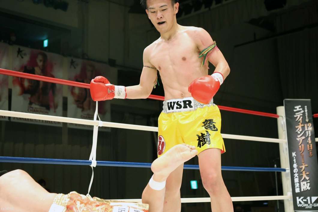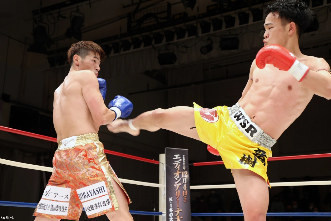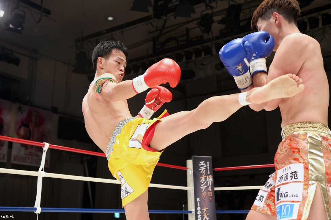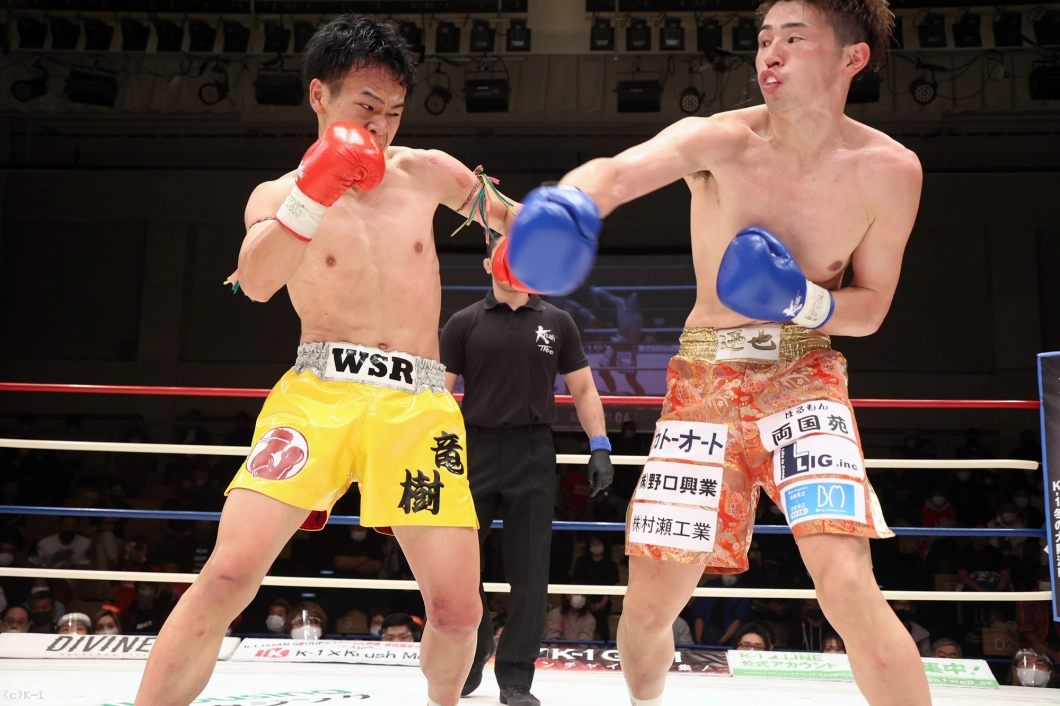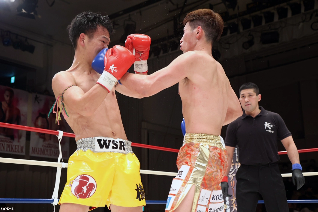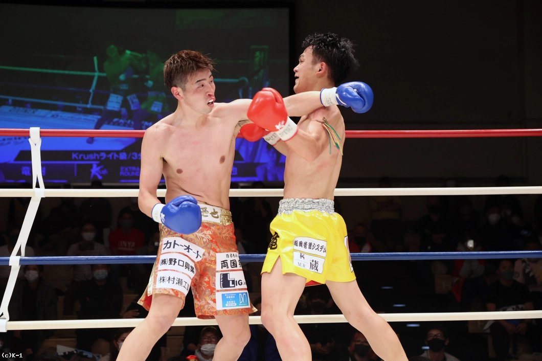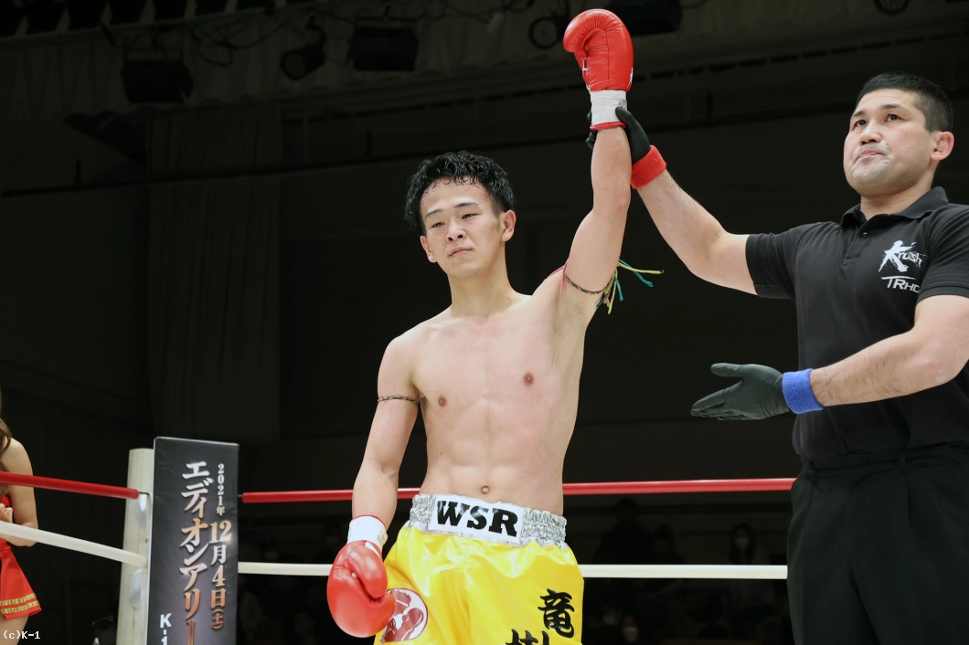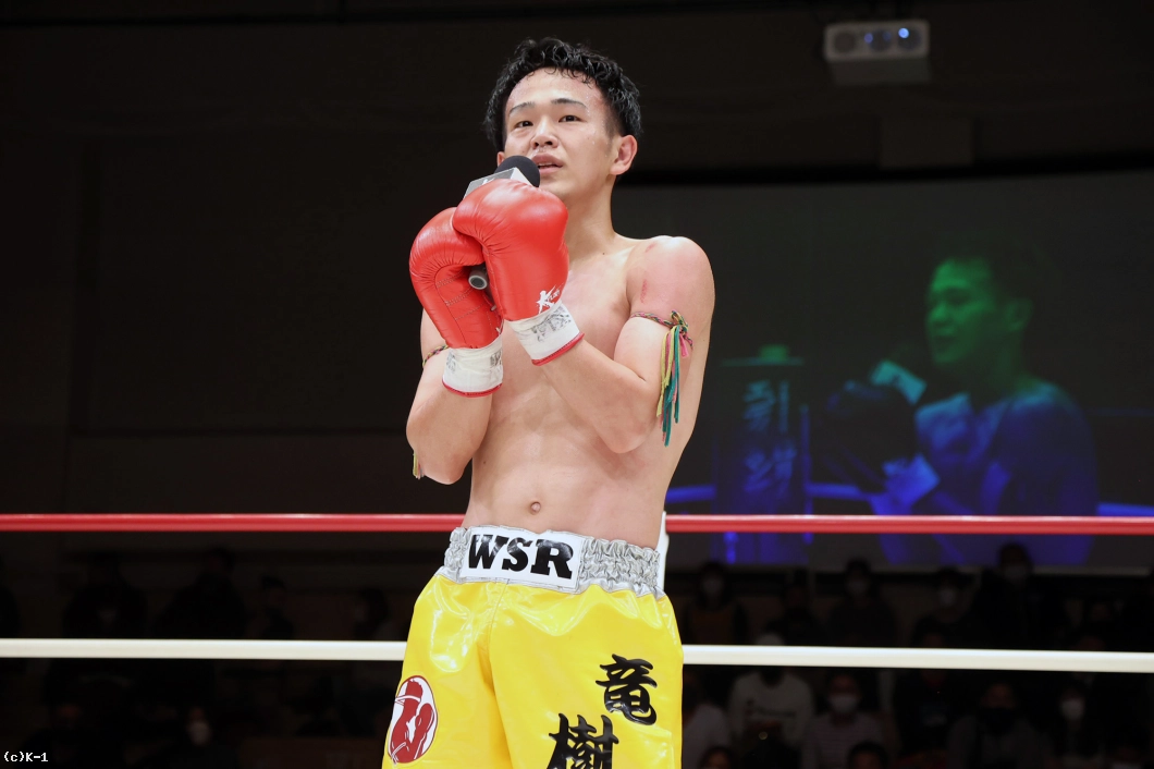 延長R、サウスポーからの右フックで襲いかかる迅也。竜樹も右ストレートから左フックで応戦、下がる迅也を右ミドルで追撃する。パンチで押し返そうとする迅也へ放った竜樹の左フックで迅也がダウンを喫する。立ち上がった迅也をコーナーに押し込み右フックを叩き込んだ竜樹が2度目のダウンを奪うと、ここでレフェリーが試合ストップ。竜樹が大接戦を力尽くで制した。