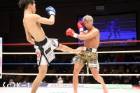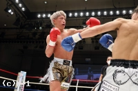 2R、冨澤は蹴りの中にパンチを織り交ぜて前に出る。内田も離れた位置から伸びのあるパンチ(ストレート)を変わらず伸ばしていくが、やはり冨澤は的確なヒットは与えない。逆にカウンターのフックを内田に当てる。