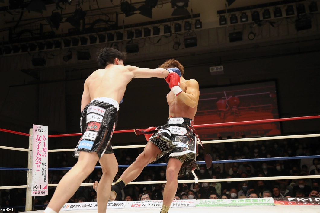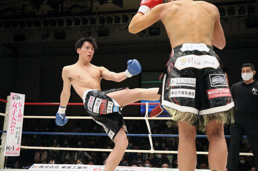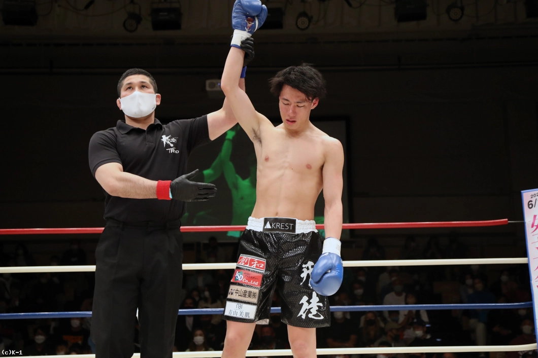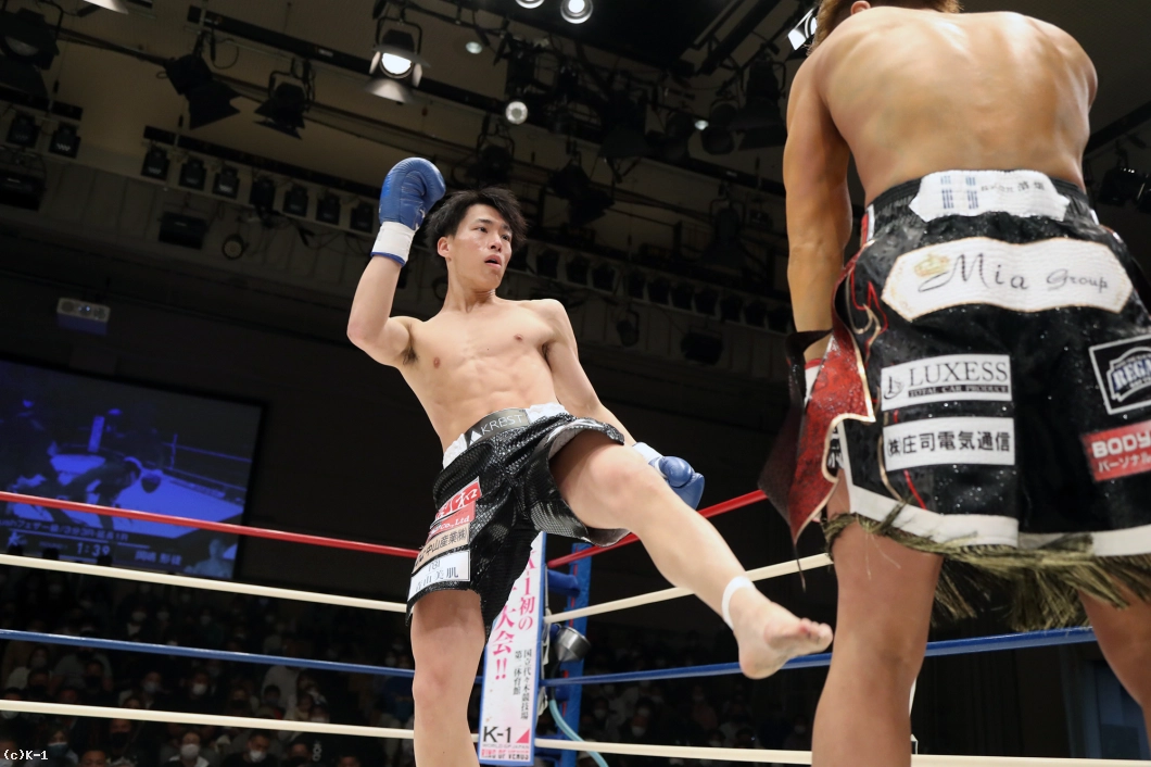 「久々の試合で、1Rはあまり攻撃が出せずに、ラウンドを重ねるごとに攻撃を出せたかなって感じです。(相手の印象は?)気持ちが強くてパンチが上手いなと思いました。(復帰戦を勝利したが?)内容は全然ダメでしたね。右のパンチが全然出せなかったんで、しっかり練習で直していきたいです。(今後の目標は?)もっと強い選手とやって、K-1に出られる選手になっていきたいです」