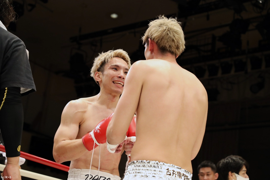 「ご来場頂いたみなさん、ABEMAで視聴頂いたみなさん、ありがとうございました! Krush.138どうでしたか? なかなかKOができずお待たせしました! 9月11日、K-1横浜大会よこはまつりで大和哲也選手の参戦が発表されてます。挑戦者、僕しかいないでしょ? Krush王者としてK-1王者に挑ませてください! 判定王者と言われてきましたが、KOする感覚を掴めたので、KOを量産できるよう、高みを目指していきますので、よろしくお願いします。明後日THE MATCH、ヒデさん、野杁正明、武尊、繋げました! ありがとうございました!」