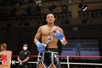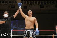 「(試合の感想は?)3KOという形で終えられたことが一番うれしいんです。ただ色んな動きをして経験を積んで、次につなげるという課題を持っていたのですが、緊張などあって動きが硬かったことが反省点です。(相手の印象は?)もともと自分と同じ空手の選手ということで噛み合うかなと思ったんですけど、実際は距離を遠くに感じて。ローも結構強くて、一発ローをもらって『強いな。空手の蹴りだな』と思いました。(今後の目標は?)今のままだと経験の差で負けることがあると思います。なのでもっと経験を積んで、いずれクルーザー級を引っ張る選手になりたいと思います」