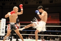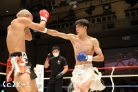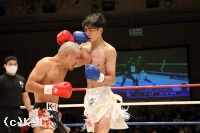 1R、両者向き合うと身長差が際立つ。大久保は懐を深く保ち、ロー・ミドルを入れていく。リーチで劣る西林はパンチを当てるため距離を詰めたいが、大久保は間合いを保ってローとヒザ、ワンツーと振るう。2R、大久保は西林の攻撃をリーチ内で対処しながら前に出てくる。西林も大久保の前進に左右フックを振るって合わせる。大久保は熱くならず、被弾があっても打ち合いに行かず自分の距離での戦いを続ける。