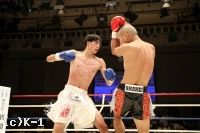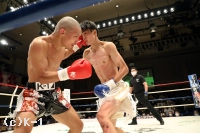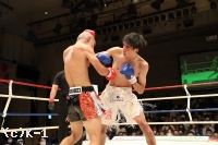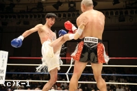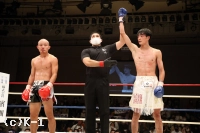 3R、大久保は前蹴りを飛ばし、西林が入ってくるとプッシングで下がらせる。西林はガードを上げつつ頭を振りながら向かい、フックとアッパーで大久保に迫る。大久保は目のいい印象で西林のパンチを頭を振ってかわしつつ右ミドル、右ストレートと当てる。判定は30-28、30-28、30-29の3-0で大久保。トーナメント決勝に進んだ。