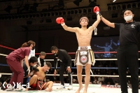 「全く作戦通りにはいかなくて、強くてやりづらかったです。(どんな作戦だった?)蹴りでいこうと思っていたんですけど、距離が遠くて当たらなかったです。(ダウンの手応えは?)倒したパンチは何かわかっていなくて…。手応えはないというか分からなかったです。(今後の目標は?)Krushのベルトが欲しいので、そこを目指してやっていきたいです。(ファンのみなさんにメッセージ)これからどんどん上を目指してやっていくので応援よろしくお願いします」