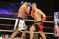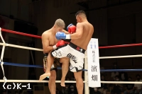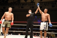 3R、両者接近戦から木村が投げを放ってしまい注意を受ける。続いて両者にホールディングで注意が出る。山口はロー・ミドルからパンチに繋げるが、下腹部に蹴りが入ってしまい木村にインターバルが与えられる。再開するも再び接近戦で山口の放ったローが下腹部に入ってしまい木村は苦悶の表情。再開すると両者前に出るがどちらもクリンチが多くなってしまい、山口が胴回し回転蹴りを放ったところでゴング。判定は30-29、30-29、30-29の3-0で山口。空手出身の山口はこれでデビューから3連勝となった。