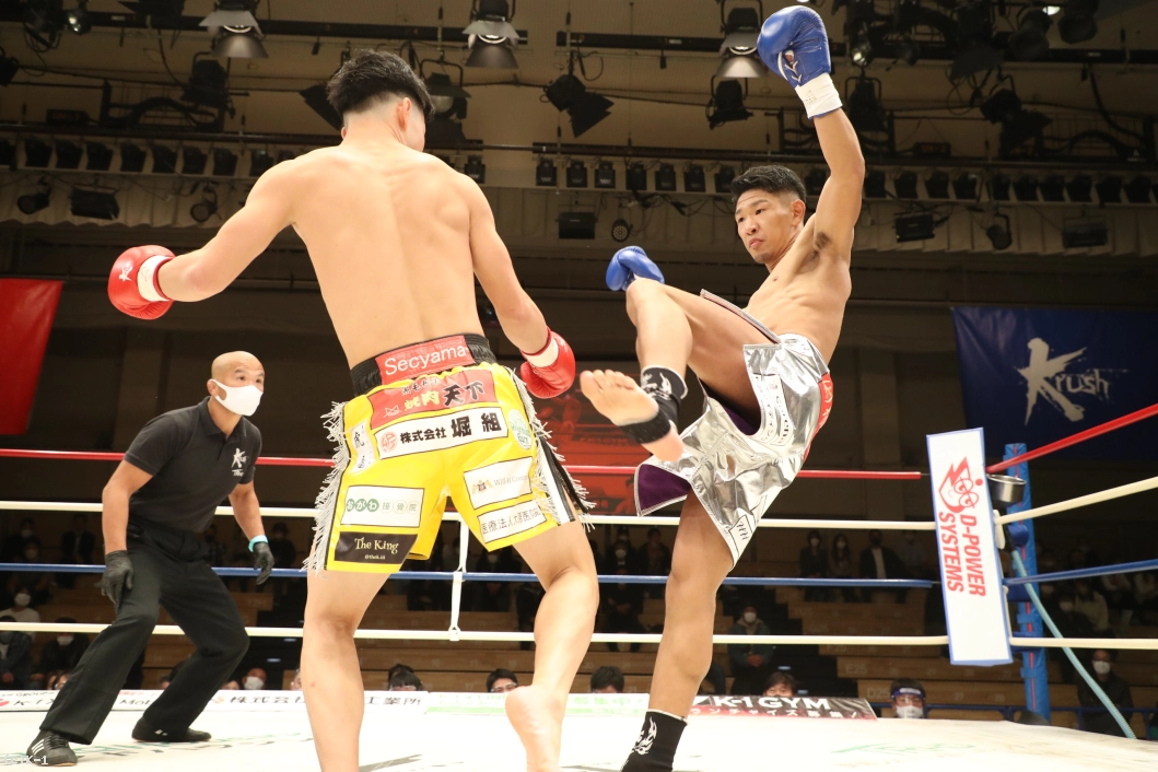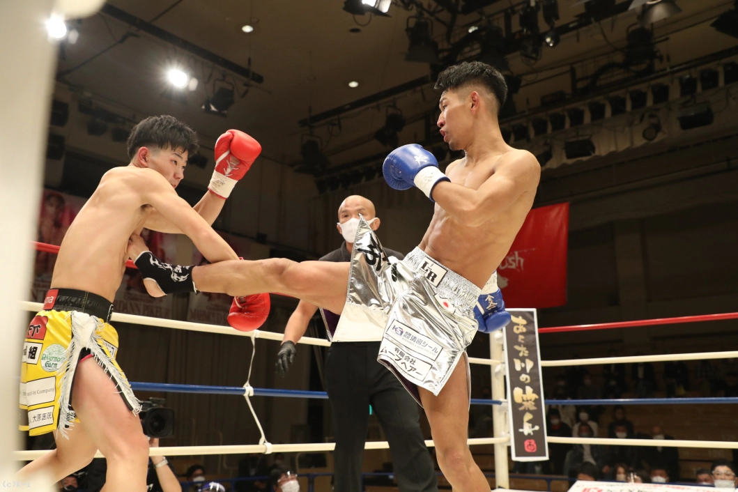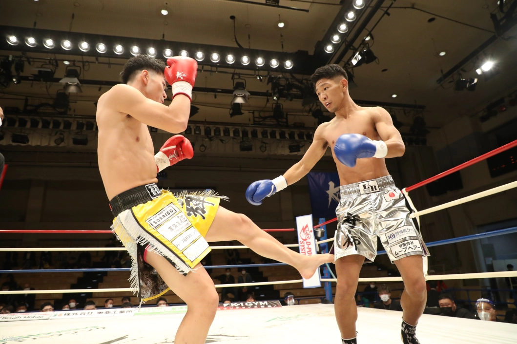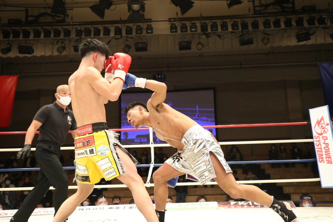 再開すると積極的にローを放つ豊田に対し阪本は右フック・左ストレートとパンチを振るう。だが豊田も坂本のパンチをグローブでブロックしクリーンヒットさせない。