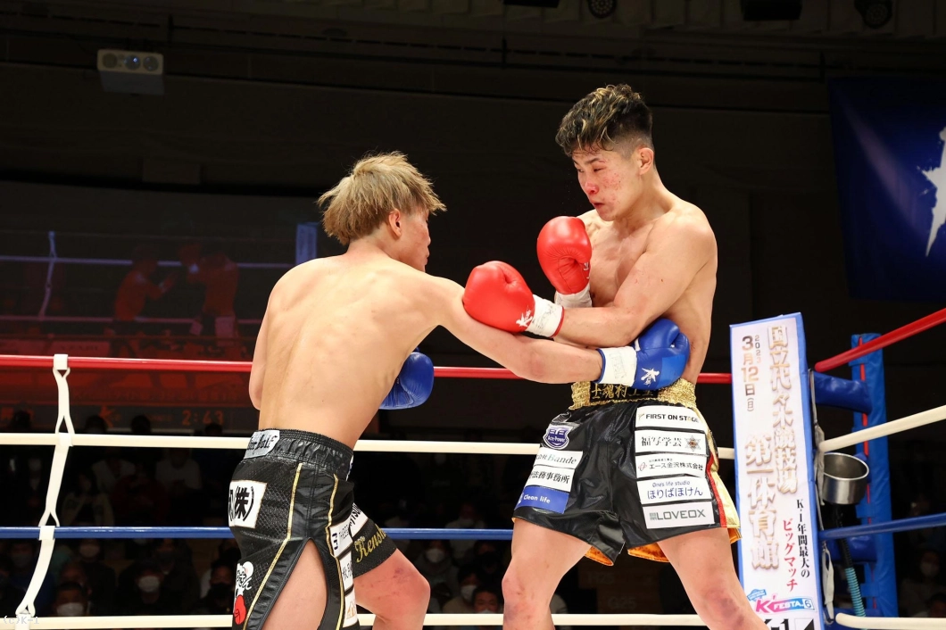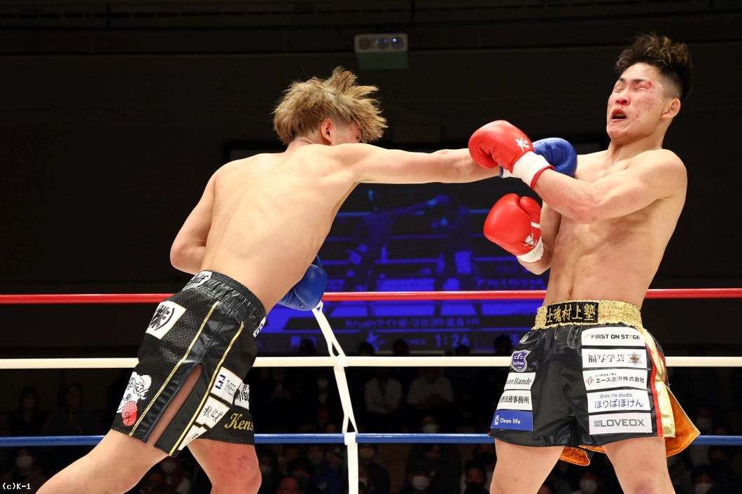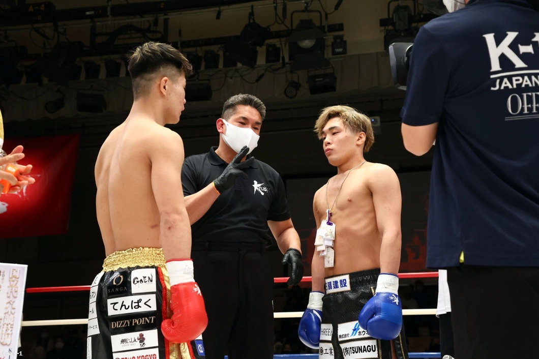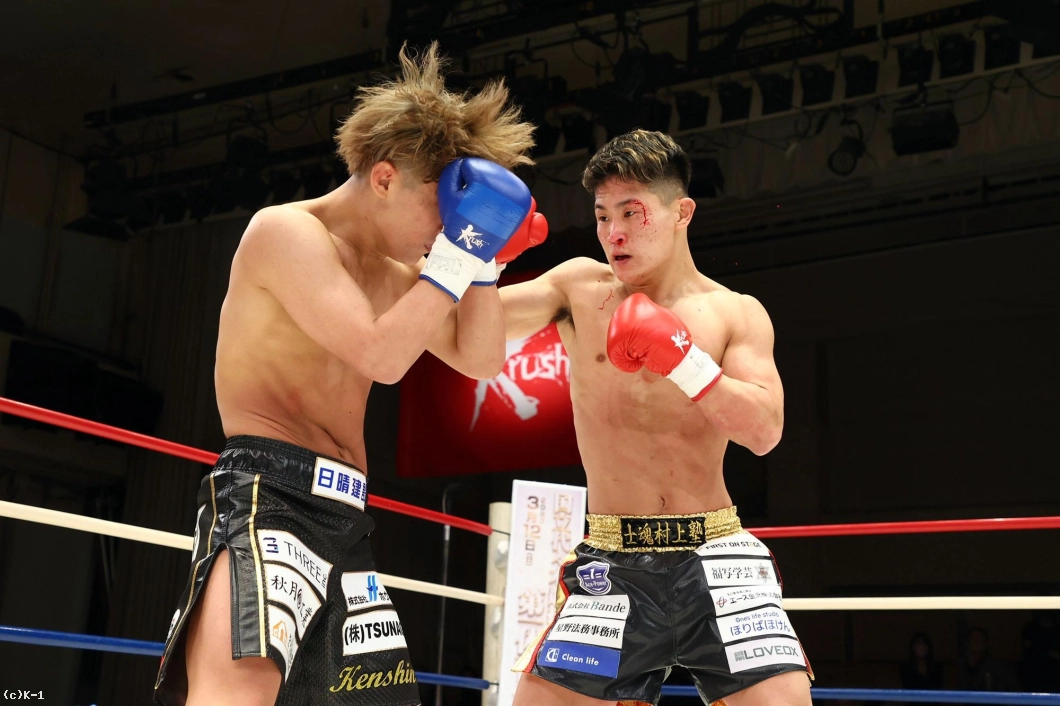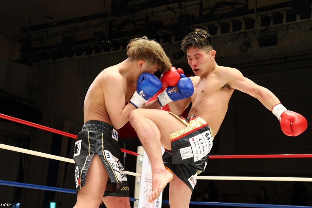 児玉はその後も右ストレート、飛びヒザ、左フックと攻撃を散らし、昇也にダメージを蓄積する。そして昇也に胴回し回転蹴りを見せラウンドを終える。