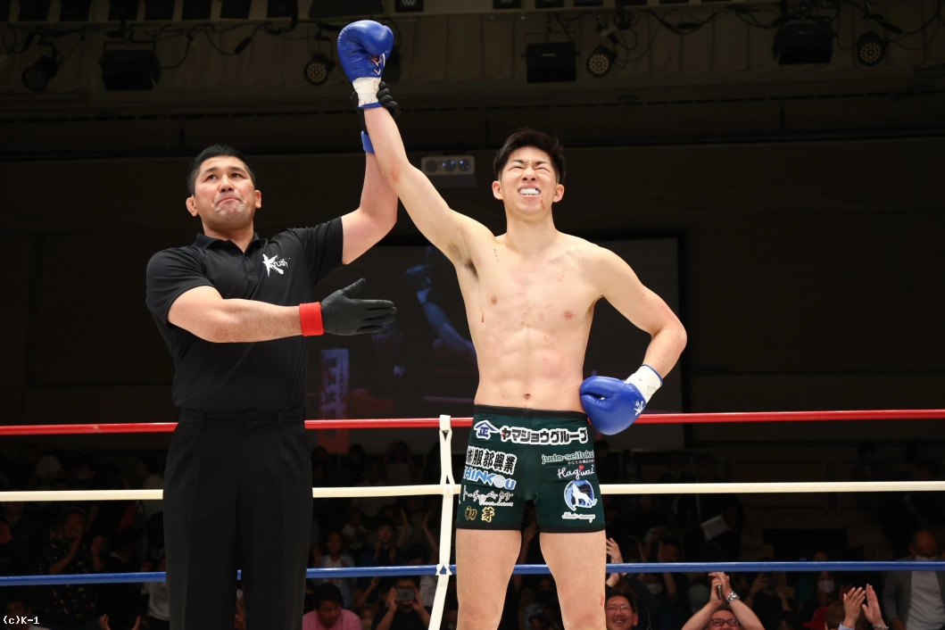 「今日はたくさんの応援ありがとうございました。トーナメントが決まって、自分がK-1に乗り込んでいくと話していたんですけど、今日の2試合でそんなレベルじゃないと感じたので、K-1チャンピオンの大和哲也選手と戦えるよう、これから大きな舞台で戦っていきたいと思います。これからも稲垣兄弟よろしくお願いします。今日、妹が誕生日で、今日は妹のために戦ったので、みなさん拍手でお祝いお願いします。これからもK-1ジム大宮、K-1の舞台で戦っていくのでよろしくお願いします」