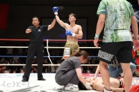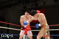 2R、璃久は距離を潰して右ストレート、細かいパンチを打ち込む。森田はヒザ蹴りとミドルでボディを狙い、ここから反撃に転じる。終盤、森田はボディだけでなく、顔面への左フックを当てる。3R、森田はパンチとヒザ蹴りで前進。璃久は左右に動いてパンチを打ち込み、森田の蹴りに合わせて右フック。この一発で森田をマットに沈めた。