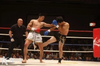 Krush-67kgの王座挑戦を目指す塚越がチームドラゴンのベテラン吉川と対戦した。1R、ジャブを突く塚越が右フック・右ヒザ蹴りで突進。吉川のボディに何発もヒザ蹴りを突き刺す。吉川もガードを固めて右ローを返すが、塚越はジャブと前蹴りで距離を取り、ヒザ蹴りと右フックのカウンターを狙う。