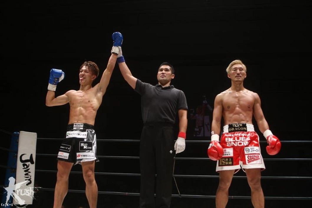 (山崎対策は?)僕は試合が決まると映像を見て対策を練る方なんですが、今回は自分の戦い方が出来れば勝機があると思ったので、自分の戦い方を貫きました。自分としてはサウスポーでいこうかなと思ったんですけど、オーソドックスでも意外としっくりきたので、そのままいつも通りいきました。(最後は打ち合ったが?)セコンドも蹴りで勝負すればいいと言っていて、僕も打ち合う気はなかったんですけど、パンチは強かったですが倒れるほどじゃないと思ったので。僕は世界の強豪やもっと強い選手と戦ってきたので、打ち合って盛り上がってくれたのでよかったですね。(驚く攻撃はなかった?)足腰がしっかりしている選手だと思ったので蹴りは重かったですね。でも想定内って感じです。