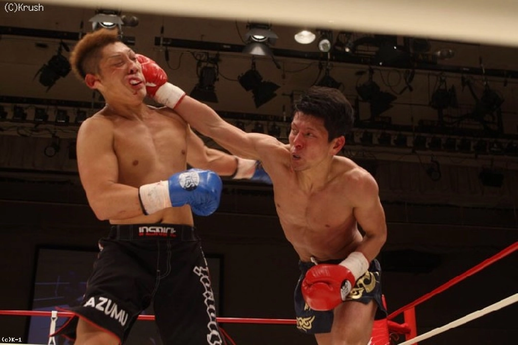 3R、パンチとミドルで前に出るKAZUMU。山本は徹底して右ローを蹴り続ける。KAZUMUはボディ打ちから顔面にパンチをつなげ、山本はローを蹴り返す。KAZUMUが左フックから前に出ると、山本も右フックを打ち返す。判定はパンチをヒットさせたKAZUMUに軍配が挙がった。