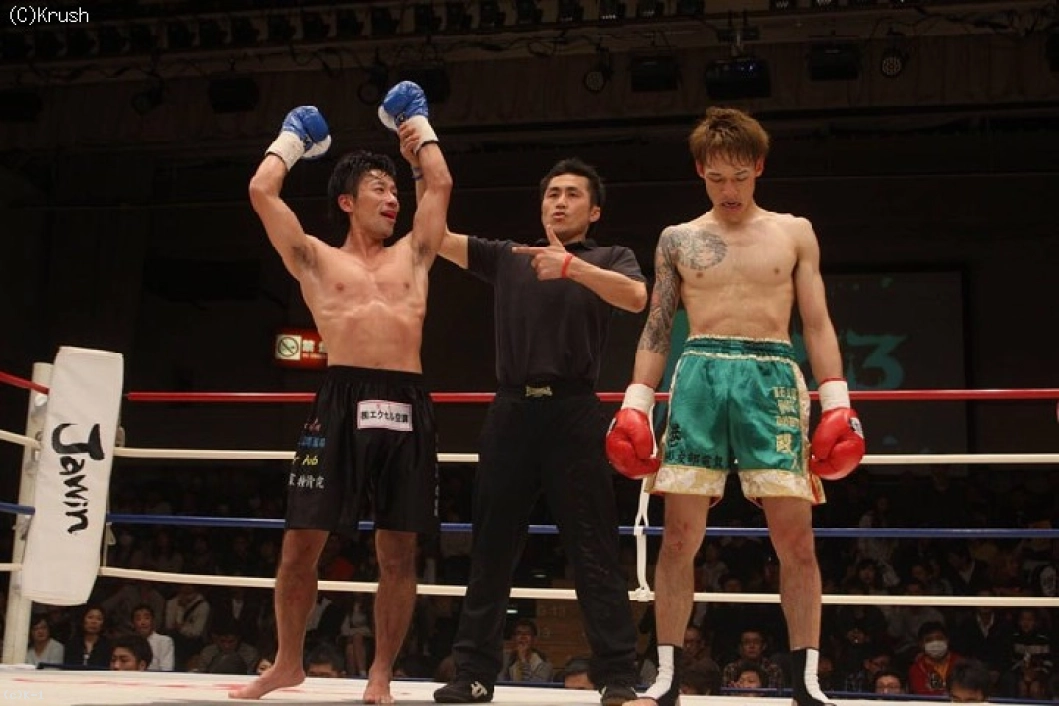 3R、佐藤がインローからパンチをまとめて突進する。塙も右ミドルを蹴って、顔面にヒザ蹴りを連打。佐藤のローで塙のバランスが崩れるが、塙も左フックから右ストレートをヒットさせる。佐藤をロープに詰めてパンチを連打する塙。凌いだ佐藤はローの連打で塙の動きを止める。最終ラウンドにローを効かせた佐藤が判定勝利をもぎ取った。