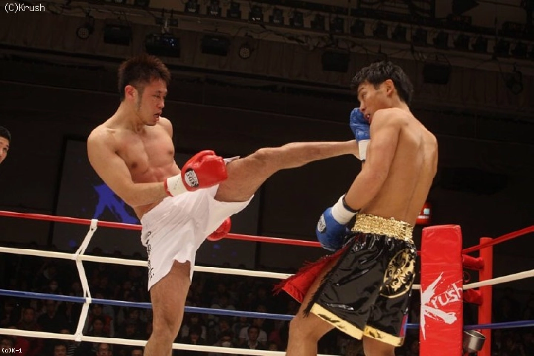 1R、いきなり後ろ廻し蹴りを繰り出す鈴木。大岩はパワフルな左右のフックで前に出ていく。鈴木は下がりながらも左ミドルを返して、右ストレートをヒットさせる。距離が詰まると鈴木が左ボディを連打。大岩はそこに右フックを打ち下ろす。
