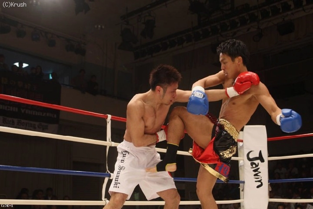 2R、鈴木が突っ込む大岩に右フックを当てて、左ミドルとヒザ蹴り。しかし大岩は下がることなく左右のフックで前に出て、徐々に鈴木にダメージを蓄積させる。そして大岩が右のヒザ蹴りを突き刺し、鈴木がダウン。何とか立ち上がる鈴木だったが、右足を負傷して足元がふらつき、レフェリーが試合をストップ。大岩がキャリアで勝る鈴木から金星を挙げた。