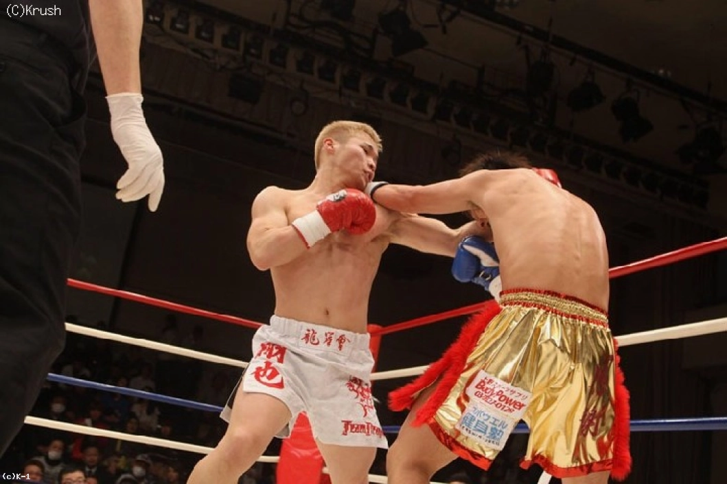 1R、鋭いミドルを蹴る林。翔也は距離を詰めて左ボディと左フックを打ち込む。じりじりと距離を詰める翔也が林をロープに詰めて左右のフックを打ち込んでダウンを奪う。再開後、翔也がすぐに突進。林もヒザ蹴りと右ストレートを返すが、翔也がパンチのラッシュでダウンを奪う。何とか立ち上がる林だったが、翔也がパンチで猛攻を仕掛け、最後は左フックで林をなぎ倒し、レフェリーが試合をストップ。翔也が林をKOで返り討ちにした。(翔也=勝ち点3、翔也=勝ち点0)