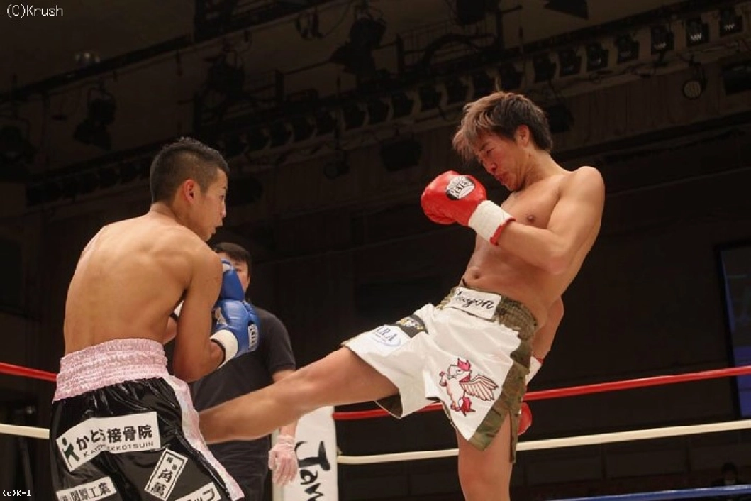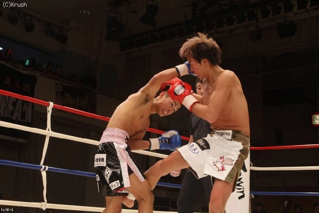 3Rに入ると佐野が前に出て右ハイキック、奥足ロー、ヒザ蹴りを集中砲火。武居も回り込んでの右フックや左ストレートを打ち込むが、佐野はそれをブロックで弾き返して飛びヒザ蹴りを狙う。試合は判定となり、2R以降、盛り返した佐野に軍配が挙がった。
