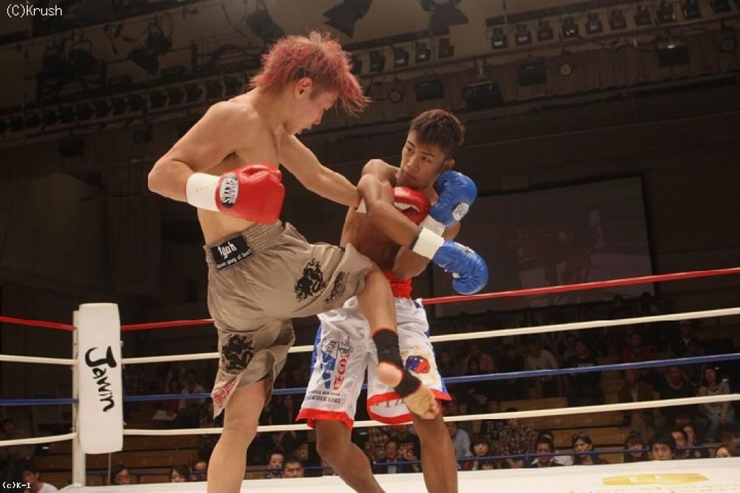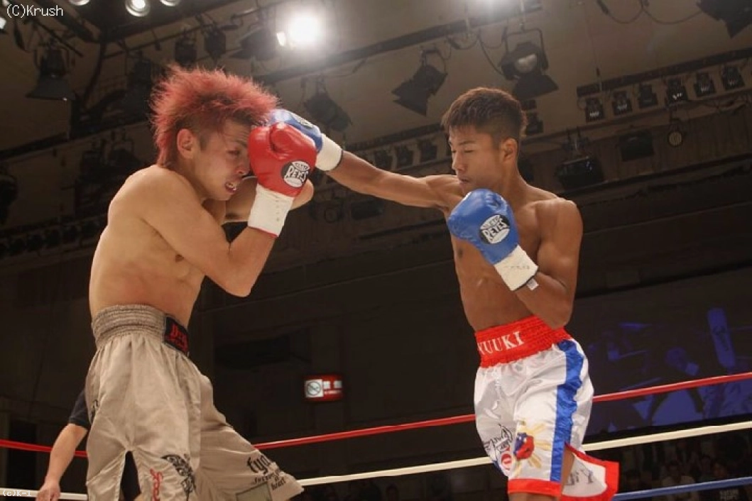 3R、飛翔のローに右フックを合わせる江川。左ボディ・左フックを当てて、パンチ&ローのコンビネーションで攻める。飛翔も右ローとヒザ蹴りを返し、右ストレートから前に出る。江川も左フックで応戦するが、終盤、飛翔が手数を増やして前に出る。判定は1-0(飛翔)のドローに終わったものの、熱い試合を繰り広げた両者に拍手と声援が送られた。