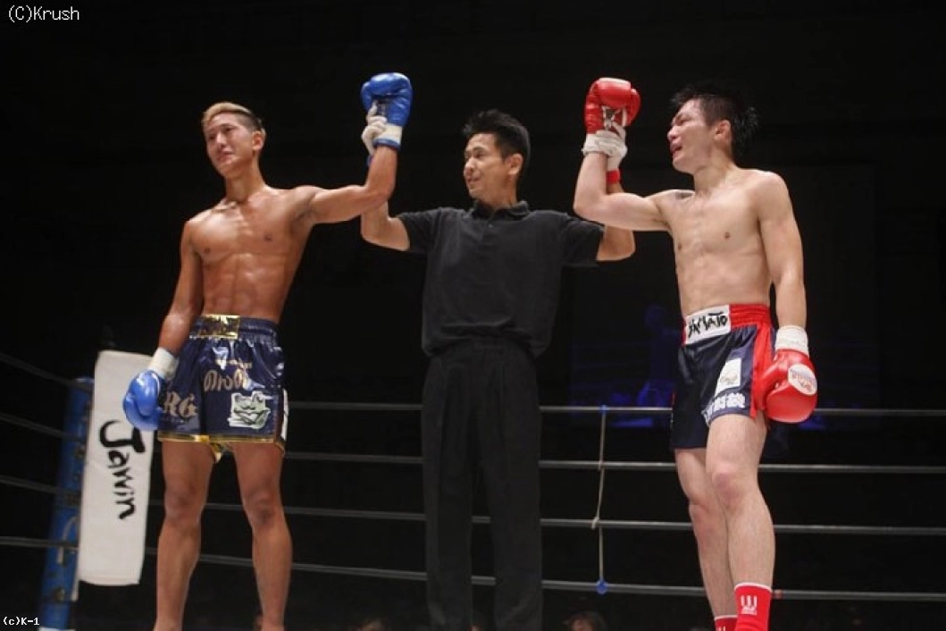 3RはMANがパンチで前進。林が距離を取りながら左ミドルと奥足ローを蹴る。MANはガードを固めて前に出て右ローとワンツー、林はMANのジャブに右フックをかぶせる。細かい連打で林をロープに詰めるMANだったが、林が左フックでぐらつかせてパンチをまとめる。そのまま林がMANをコーナーに詰めて一方的に攻め込むが、終了直前にMANが起死回生の右ストレートでダウンを奪う。これでMANがポイントをイーブンに戻し、ドローに終わった。