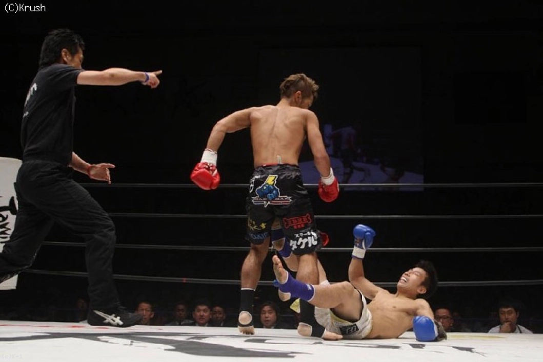 2R、平塚が左右のミドル&ロー、東本は左ストレートからパンチをまとめる。平塚はパンチをまとめて左ローにつなげるが、東本が左ストレートを打ち抜いてダウンを奪う。再開後、東本が左右のフックを打ち込むと平塚が2度目のダウン。何とか立ち上がった平塚だったが、ダメージが大きくレフェリーが試合をストップした。