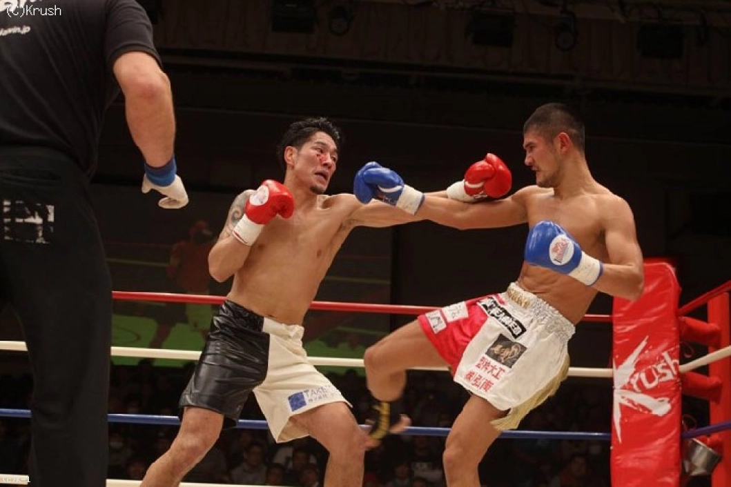 2R、TaCaは強烈な右ストレートと左ミドル。パンチを顔面とボディに打ち分ける。一輝も右フックを当てるが、タフなTaCaは倒れない。ガードを上げて右のパンチとローで前に出る一輝。TaCaは下がりながらパンチを顔面とボディに打つ。