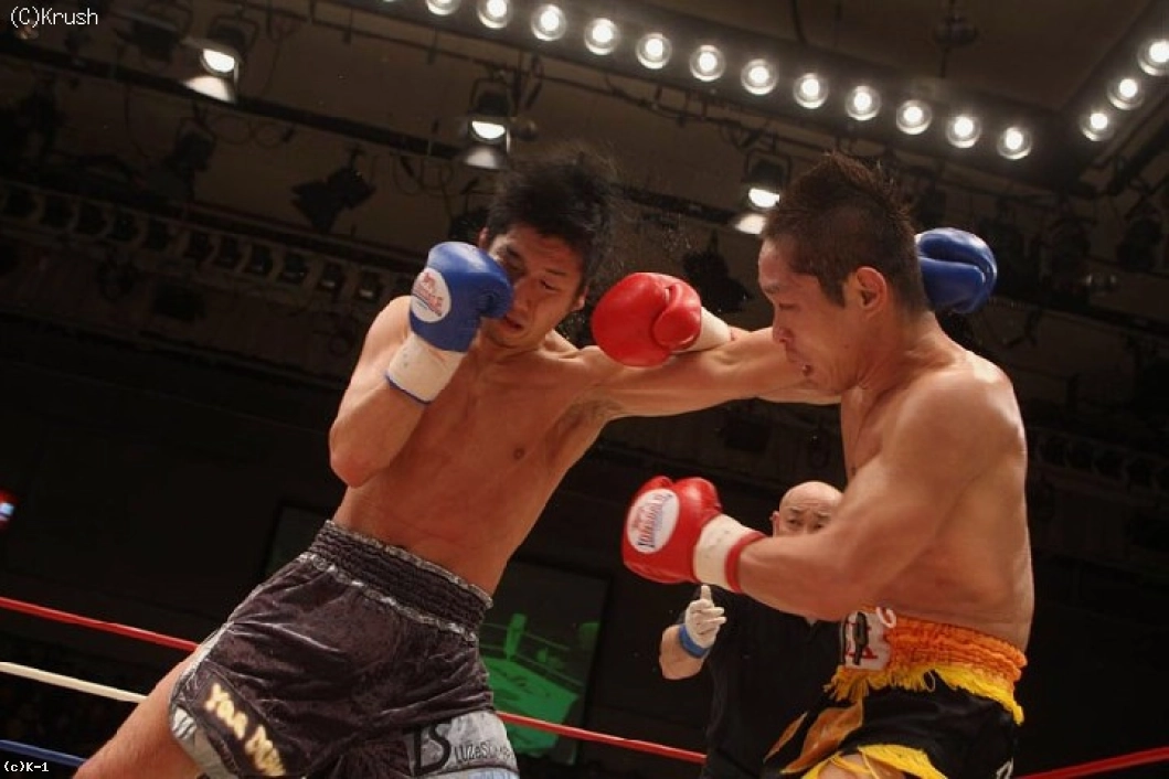 2R、大月は青津のガードの間に左のパンチをねじ込んで左右のフック。青津もひかずに左フックを返し、飛び込むような右ストレート。大月をロープまで詰めるとボディにヒザ蹴り。大月は右ローと左ハイ、左ボディ。青津は大月をコーナーに詰めて左アッパーと右ストレート、ヒザ蹴りを突き刺す。終盤、2人は足を止めて打ち合う。
