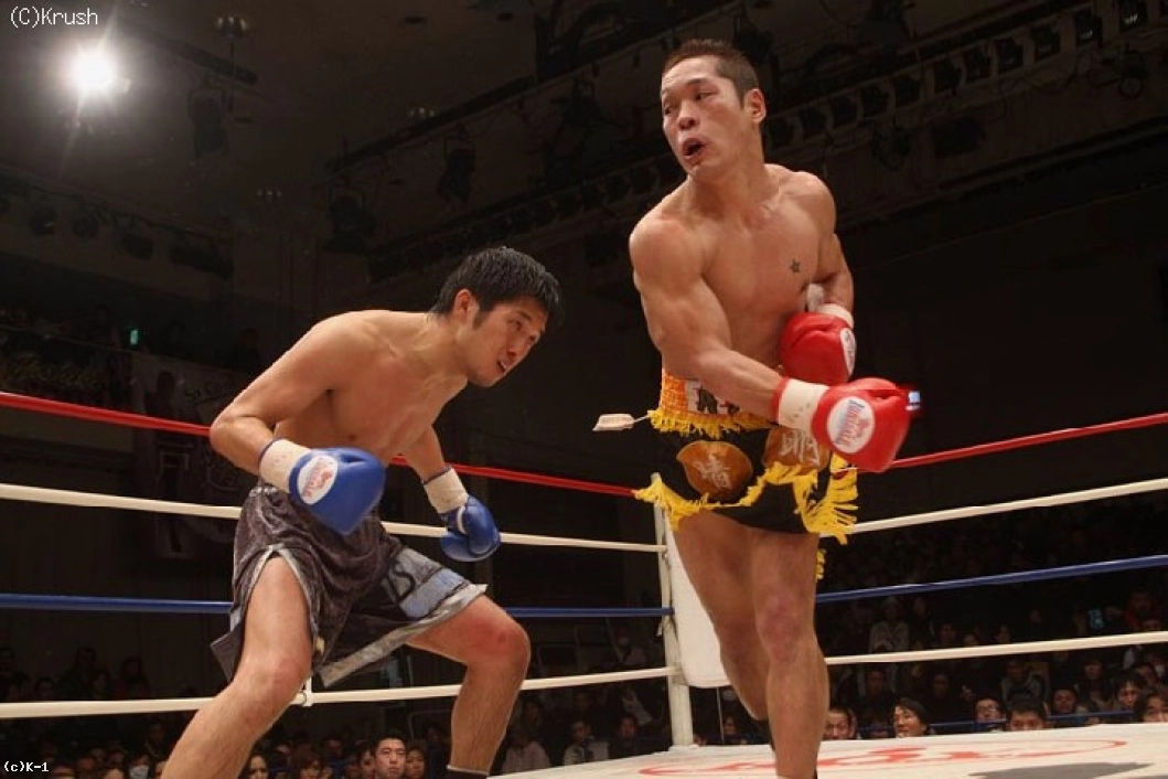 延長R、ローを蹴って前に出る大月。青津が右ストレートで前に出ると、大月は左ミドルを蹴る。パンチで飛び込む大月。青津はアッパーとヒザ蹴りを返す。残り1分、大月は右フック、左アッパー、右フック。青津も右ストレートと左アッパーで前に出る。試合終了のゴングが鳴ると、両者とも両手を広げて勝利をアピール。判定は2-1と割れたが大月の勝利。タフな青津を振り切り、復帰後、Krushで2連勝を収めた。