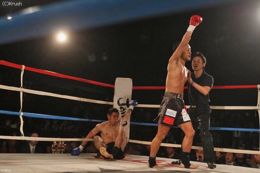 2R、落合が奥足ローと左ミドル、中村は左フックから右ストレートを返す。落合の奥足ローにパンチを狙う中村。右フックから右ストレートで落合の顔面を打ち抜くと、落合が後方に吹っ飛ぶようにダウン。何とか立ち上がった落合だったが、ダメージが大きく、レフェリーが試合をストップ。中村が右ストレート一発で見事なKO勝利を収めた。