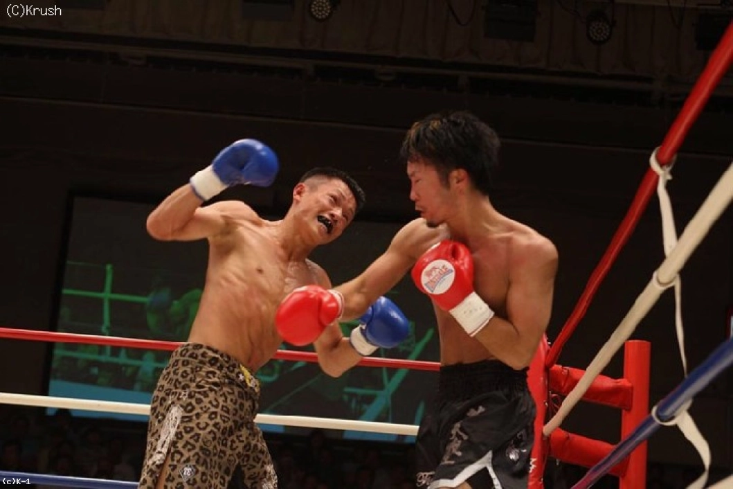 2R、隆聖が奥足ローと右ストレート。益田が右ストレートを当てて前進すると、隆聖もカウンターの右を当てて、益田が腰から崩れる。すぐに態勢を立て直す益田。隆聖は一気にパンチで前に出る。終盤、隆聖がロープに益田を詰めて右ストレートから連打。益田も左フックを返すが、隆聖が手数で押し込む。