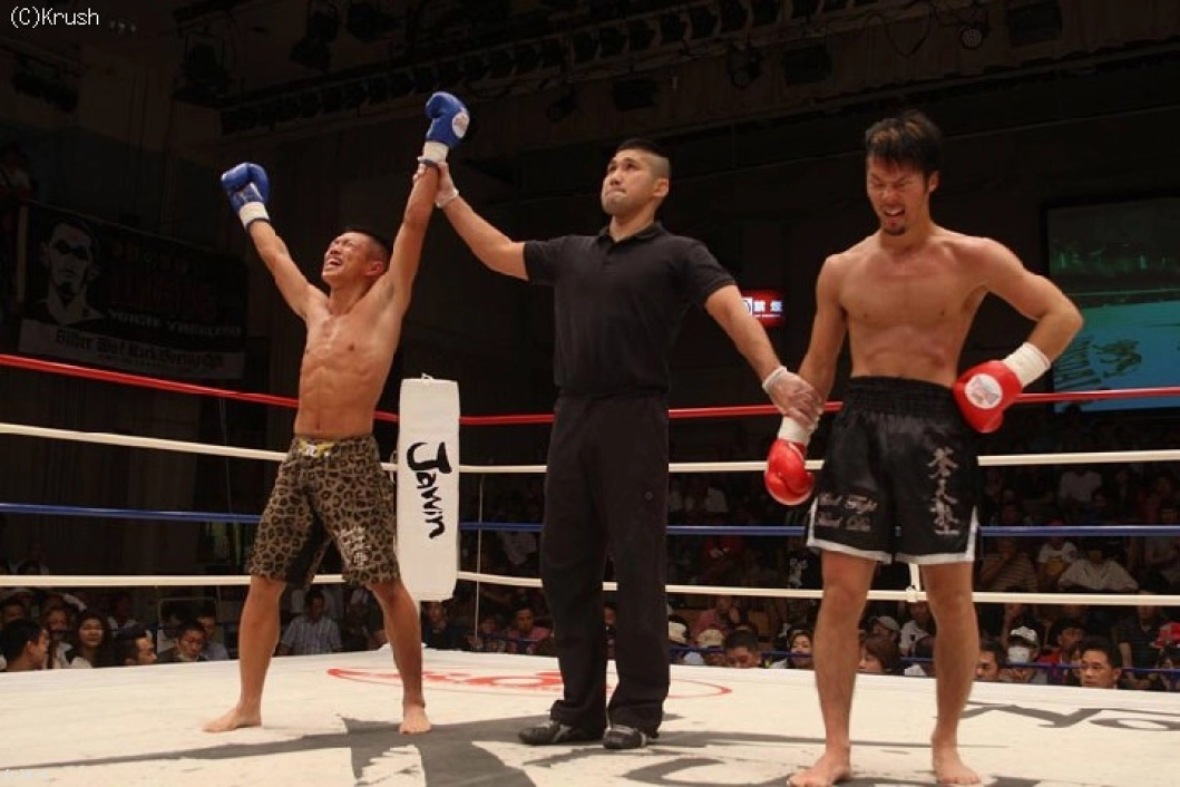 3R、右ローを蹴る益田。隆聖が奥足ローを蹴ると、そこにパンチを狙う。隆聖のパンチに対して、益田は右ロー。これがローブローとなり、試合が一時中断となる。再開後、益田が左フックから飛び込んで右ストレート。ここから火の出るような打ち合いになり、益田が右アッパーを突き上げる。最後まで打ち合い続けた激しい一戦は隆聖に軍配が上がった。