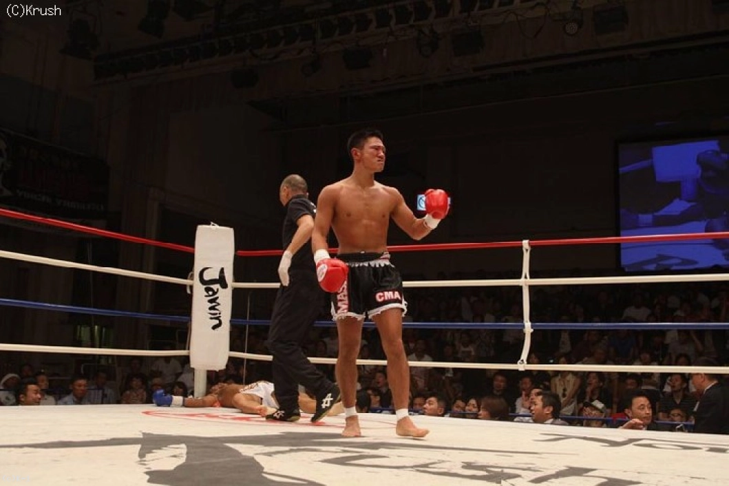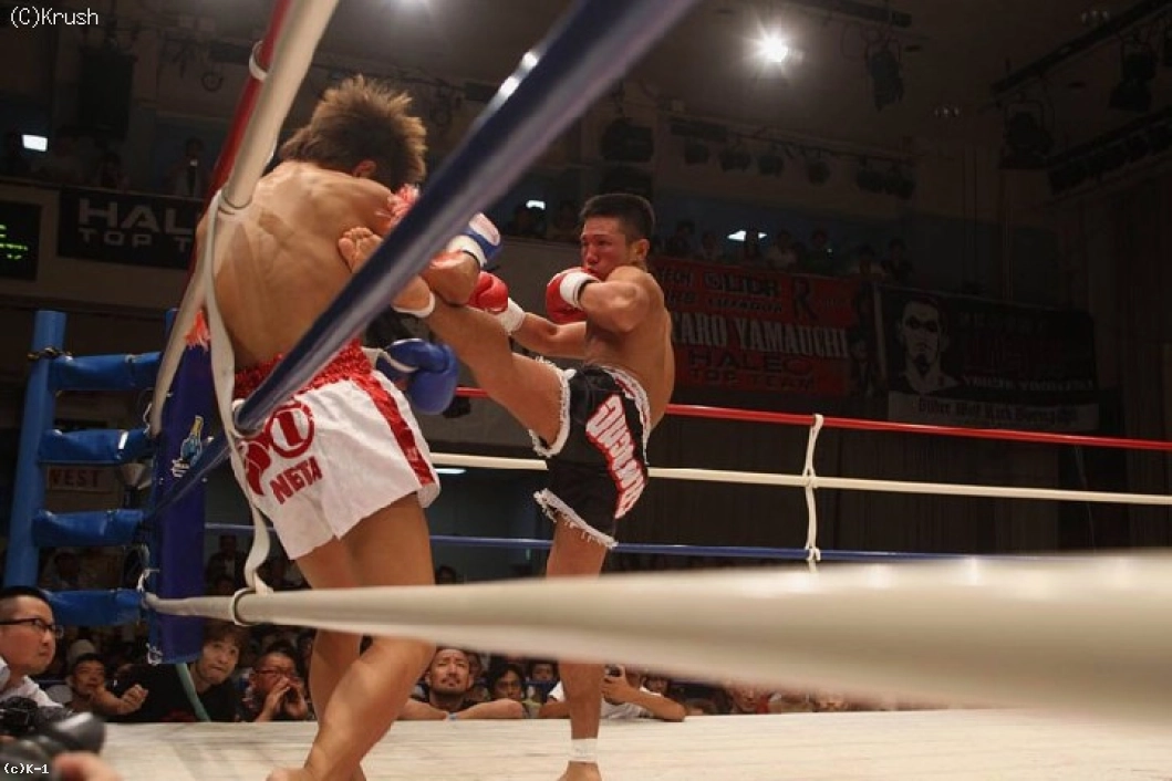 1R、嶋田がローと前蹴り。結城が右のパンチで飛び込むと、嶋田も右を返してパンチから右ハイキックにつなげる。じりじりとプレッシャーをかける結城が右ミドルでダウンを奪う。しかし嶋田も右ストレートと左フックを当てて、結城をロープまで詰めて一気に連打。結城も同じように右ストレートと左フックを打ち返す。