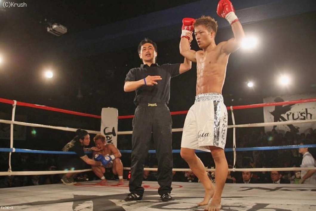 そして3R、大滝が乱暴のボディに強烈な左のヒザ蹴り。これで乱暴が後ろに吹っ飛ぶようにダウン。そのまま立ち上がることが出来ず、大滝が2試合連続となるKO勝利を収めた。
