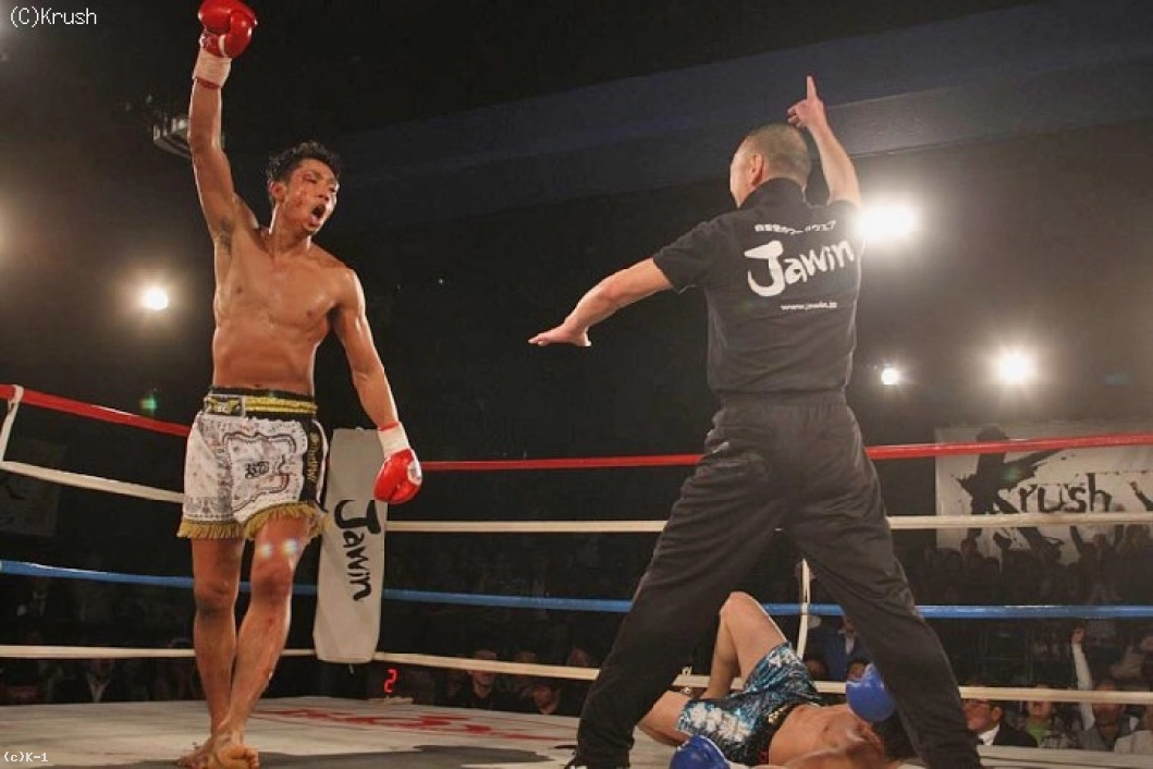 延長R、塚越は完全に息を吹き返し、ジャブから右ストレート、距離が詰まると鋭いヒザ蹴りを突き上げる。山際も負けじとパンチで打ち合うと、塚越が左フックを打ち抜いてダウンを奪う。立ち上がる山際に塚越は左右のパンチを打ち込み、最後は山際をなぎ倒すようにダウンを奪い、激闘に終止符を打った。