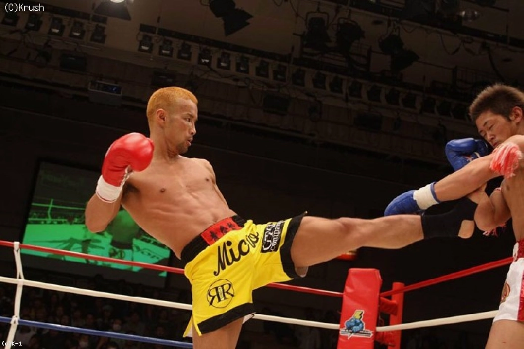 1R、サウスポーの大川が嶋田の前足にロー。嶋田も右ミドルを蹴り返すが、大川は左ストレートからパンチをまとめる。嶋田も前蹴りで距離を取って右ストレート、ここで大川の左目尻が切れてドクターチェックが入る。