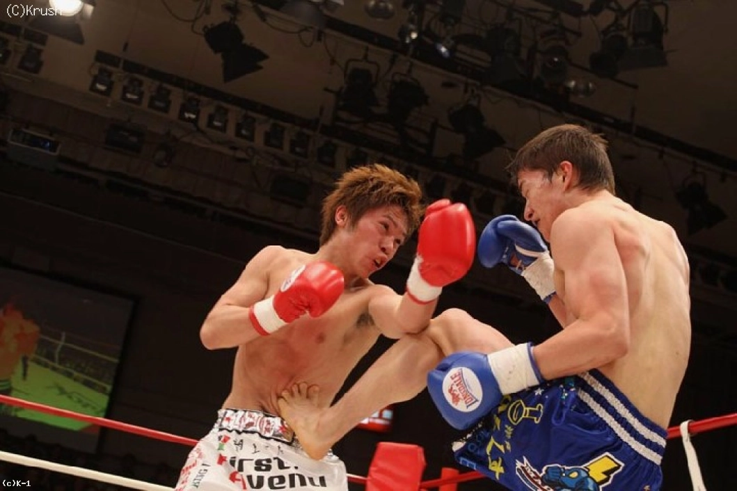 2R、ここも宮元が前に出て前蹴りから左フック。下がりならローを返す将大に左ボディ、鋭いミドルを蹴っていく。将大の前蹴りをすくって左フックから右ハイキックの宮元。将大は下がって距離を取りながら右ストレートを狙うが、宮元も右ストレートから左フック。このラウンドも宮元が前に出続けた。