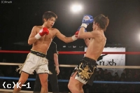 2R、戸邊は左右のボディ打ちからローにつなげる。パンチ、ロー、ヒザ蹴りと攻撃を当て続ける戸邊だが、タフな鎌田もローやパンチを返して倒れない。