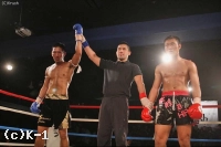 3R、右ハイキックを当てた小鉄がパンチで前に出る。松村もパンチを振り回して突進。ここで松村が右の目じりをカットする。ドクターチェック後、小鉄はパンチからヒザ蹴り。松村をロープに詰めて手数を増やす。ダウンを奪った以外でも攻め続けた小鉄が松村を下した。