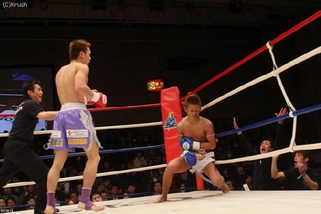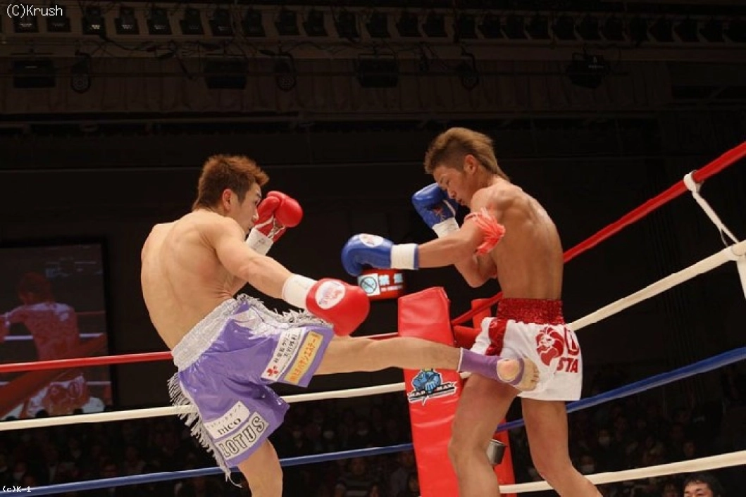 3R、前蹴りと右ローで前に出る嶋田。鈴木も前蹴りを返して右ロー、左ボディを打ち込む。鈴木は右ローを効かせて、再び強烈な左ボディ。これで嶋田が崩れ落ち、鈴木が先にダウンを奪う。立ち上がった嶋田に鈴木はパンチと右ロー。そしてえぐるような左ボディでダウンを追加する。必死に立ち上がる嶋田だったが、鈴木が左ボディを当てると、そのままダウン。鈴木がKO勝利でリーグ初戦を飾った。(鈴木=勝ち点3、嶋田=勝ち点0)