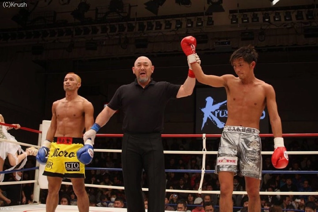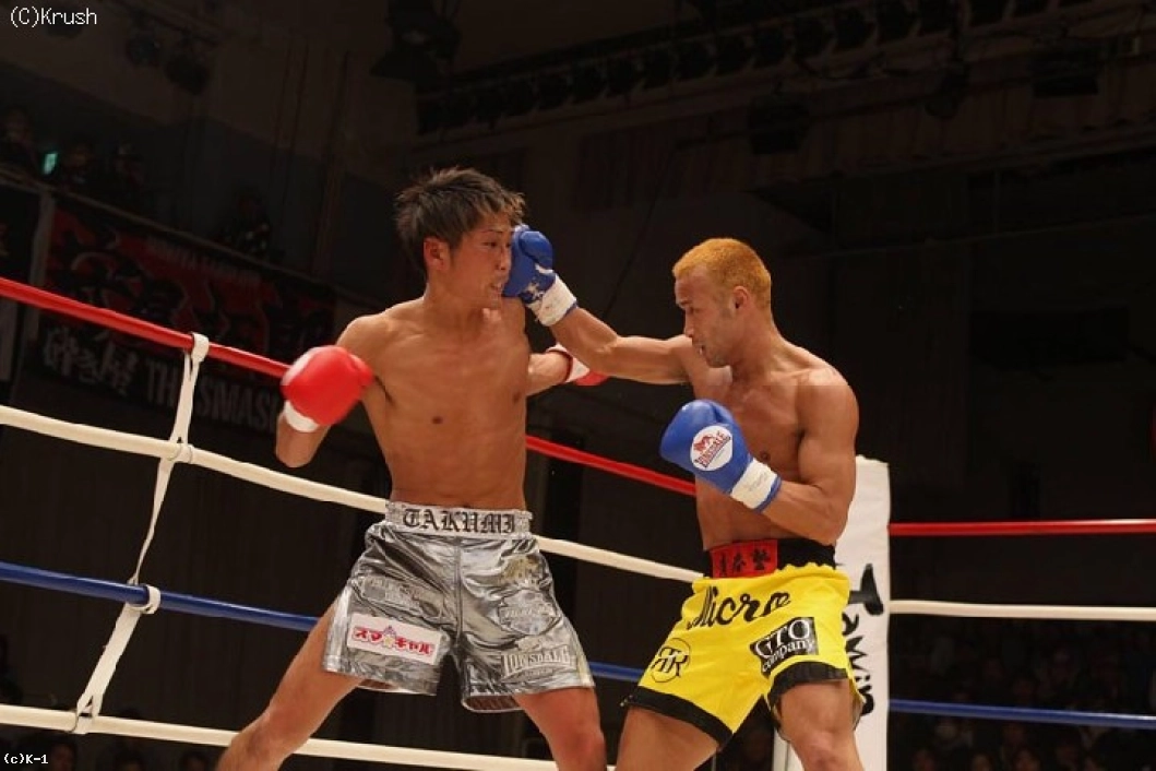 大川はインローとミドルで匠をロープに詰めて連打。しかし匠も右ストレートから回転の速いパンチを打ち込んでダウンを奪う。残り10秒、一気に襲い掛かる匠。右ストレートで大川に尻餅をつかせるが、それとほぼ同時にラウンド終了のゴング。ダウンとは認められなかった。
