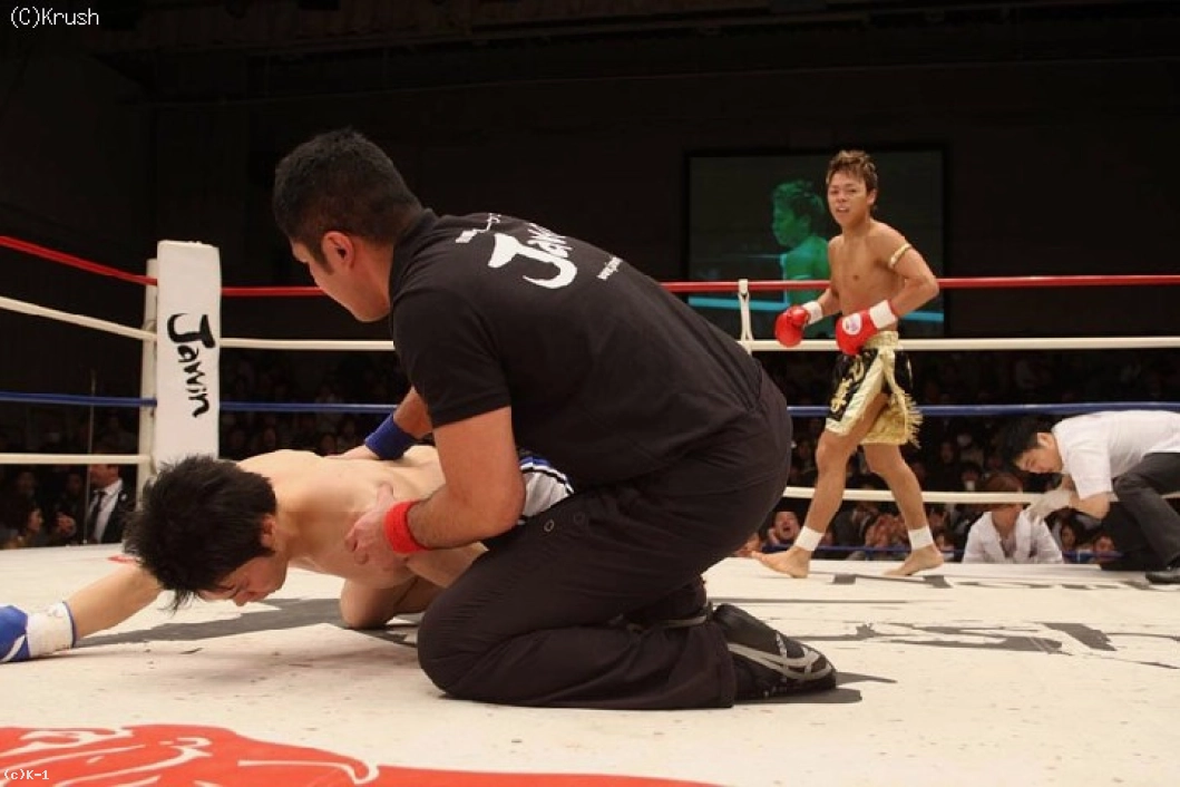 試合後、勝利のムーンサルトを見せた武尊は「58kgのトーナメント、僕は人生をかけて戦い抜くつもりです。格闘技をやっていても、ベルトがないと何の意味もない。トーナメントには強い人がたくさんいますけど、僕が一番ベルトが相応しいと思います」と王座奪取を誓った。