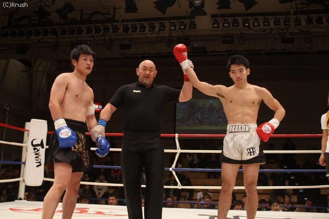 2Rも右ロー、さらには奥足へのローを蹴り続ける佐々木。飯塚もそこに右ストレートを狙うが単発に終わる。3R、佐々木の右ローで飯塚の足が止まる場面もあったが、飯塚も踏んばって試合終了。KO勝ちこそ逃したものの、佐々木が判定勝利を収めた。