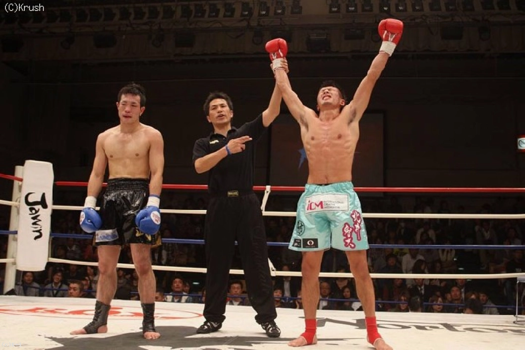判定は2‐0で北井。終了直前のダウンで北井が勝ちをもぎ取った。